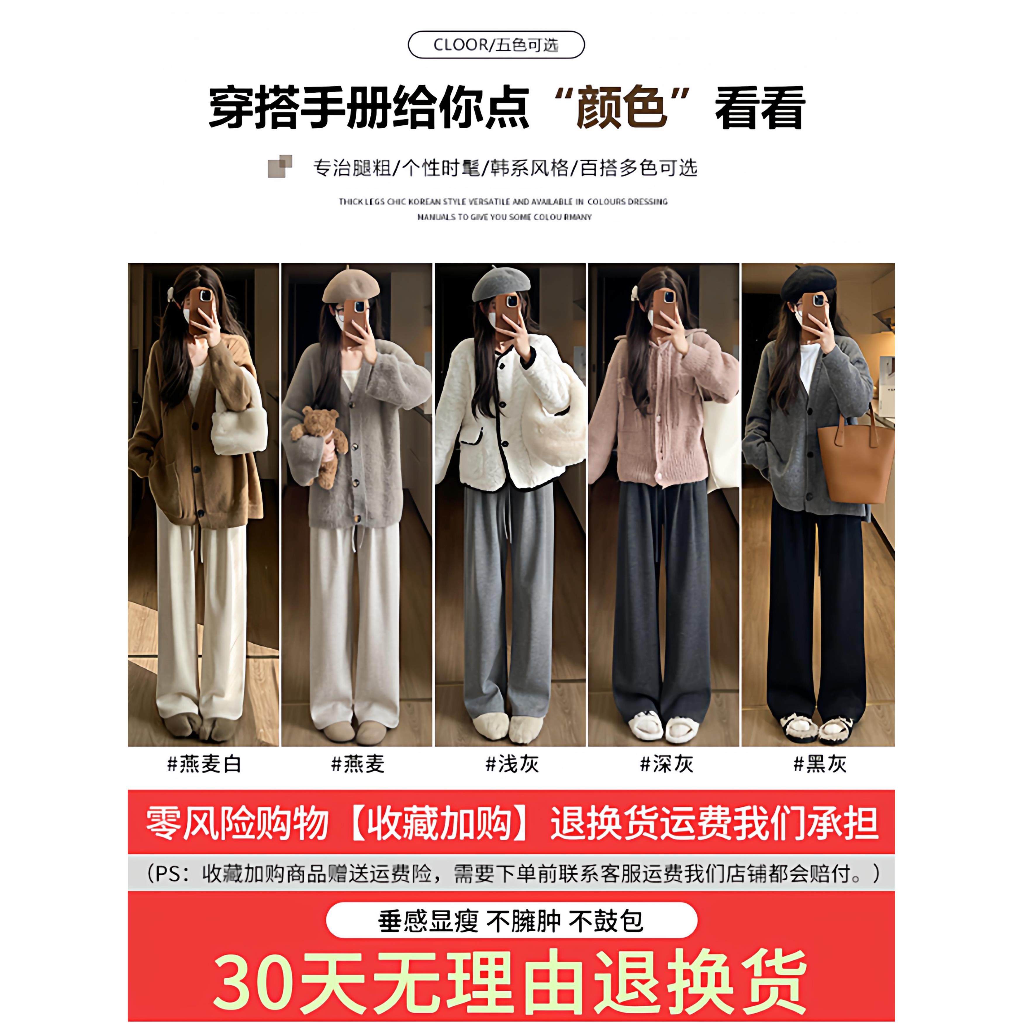 胖mm秋冬加绒宽松bf慵懒显瘦小个子阔腿裤 300斤灰色糯米裤 女大码