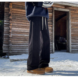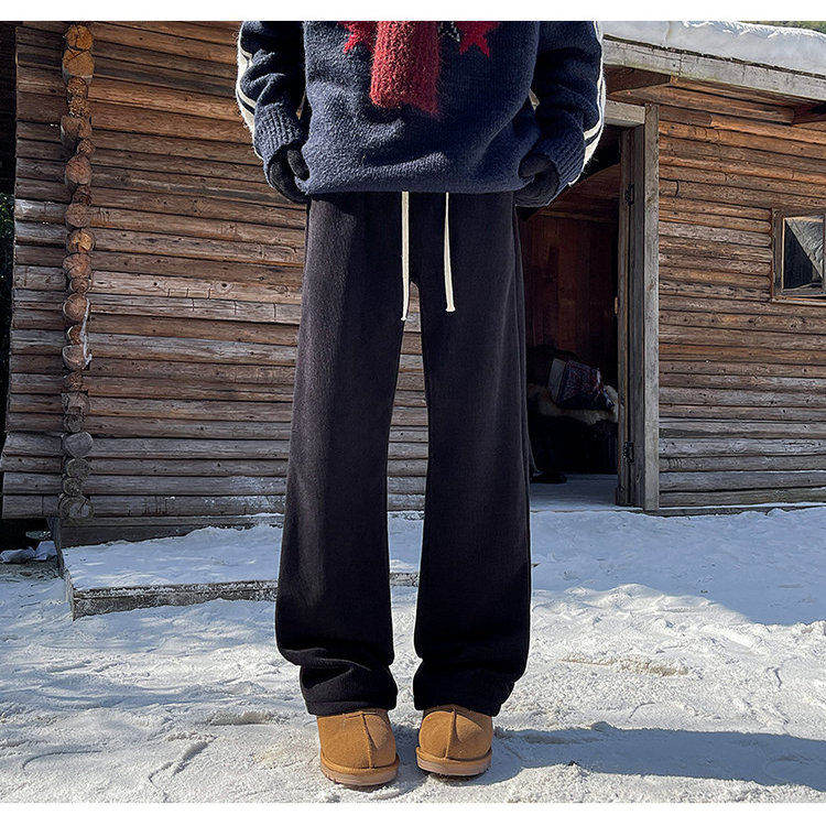 佐梦依加绒加厚休闲裤 弯刀阔腿裤