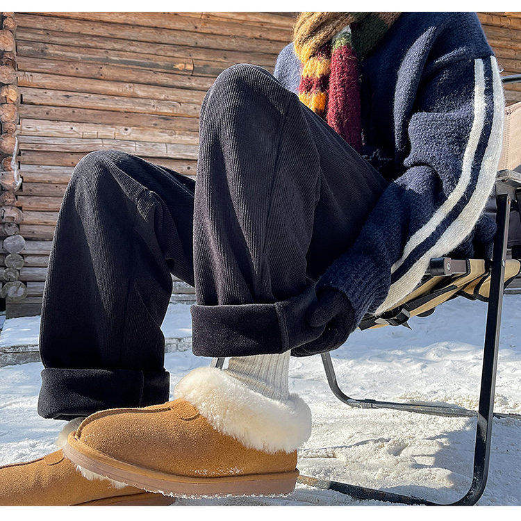 115学生灯芯绒子秋冬季 青少年直筒裤 高个子加长加绒超厚款 休闲裤