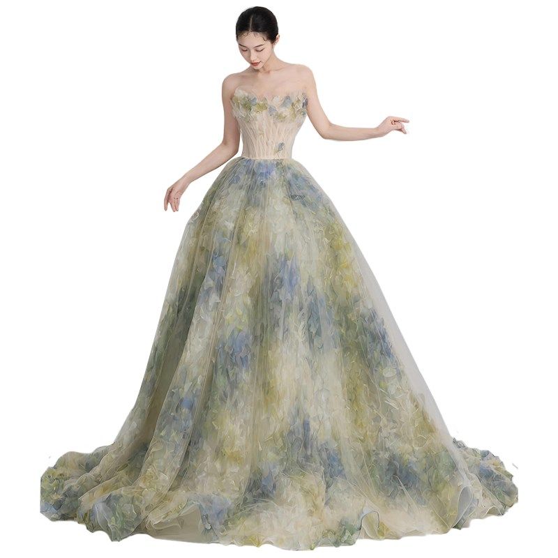 极速2025新款 花朵超仙宴会毕业生日公主裙新娘 主持人晚s礼服法式