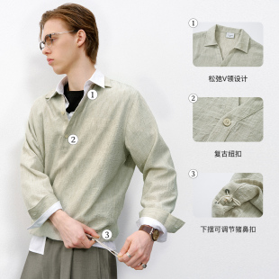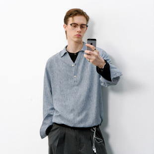 老钱衬衫 2026春季 男 POLO衫 714street轻薄褶皱感色织cleanfit长袖