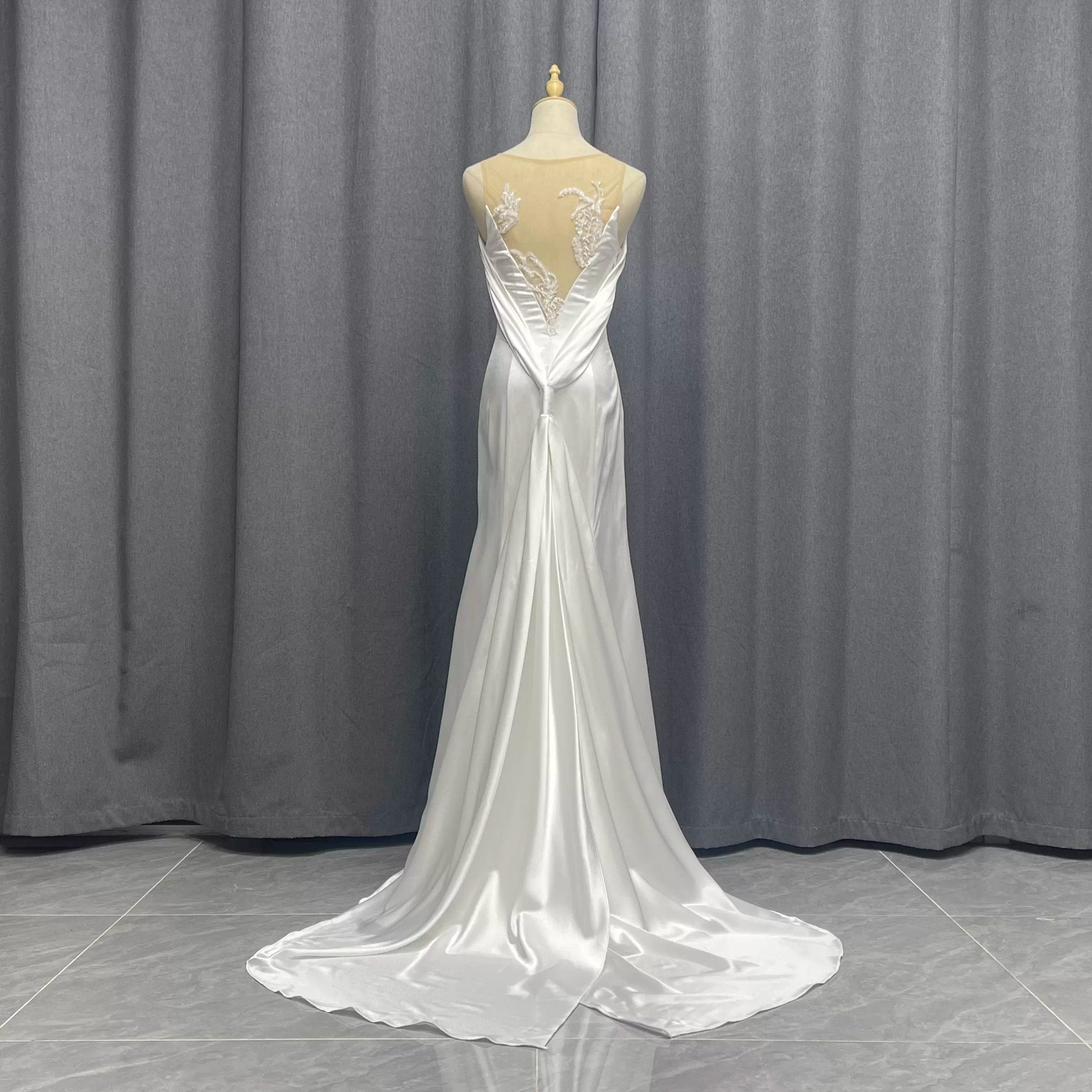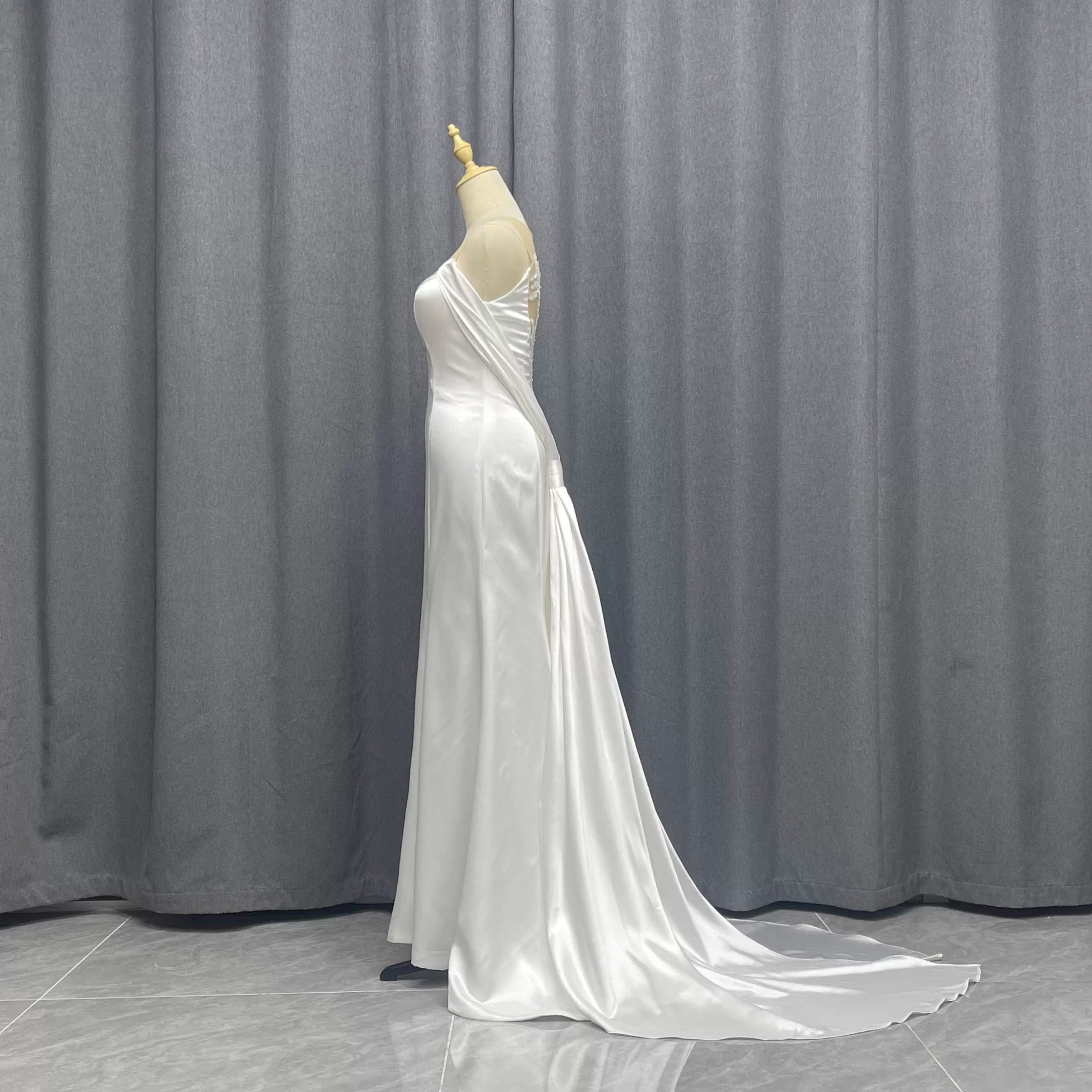轻婚纱缎面小个子领证订婚登记小白裙日常款 连衣裙旅拍毕业晚礼服