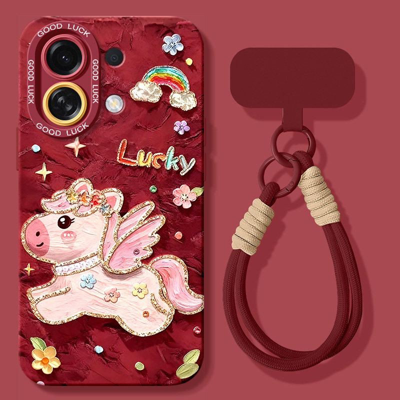 适用oppok13turbopro手机壳k13turbo新款 k12s硅胶k12plus挂绳k11x新年oppok10全包k9防摔2026油画马女保护套
