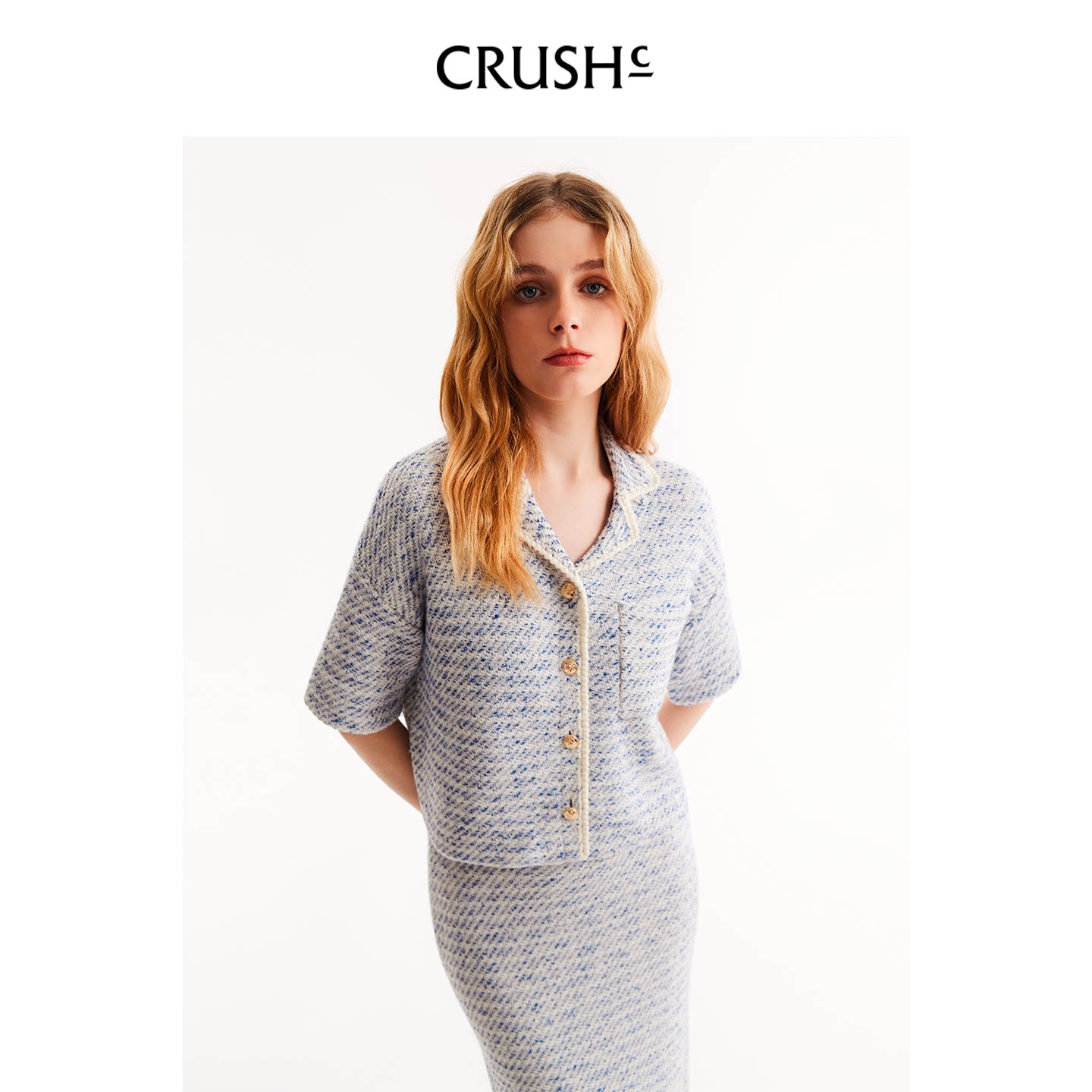 翻领箱型短袖 花呢短袖 夹克上衣女 Collection2026年早春新款 CRUSH