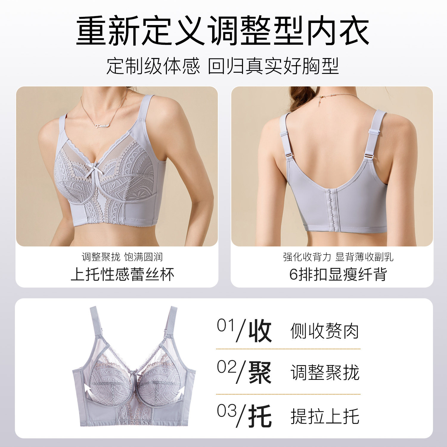 美思院线调整型内衣女全罩杯薄款 大胸显小上托收副乳防下垂文胸罩