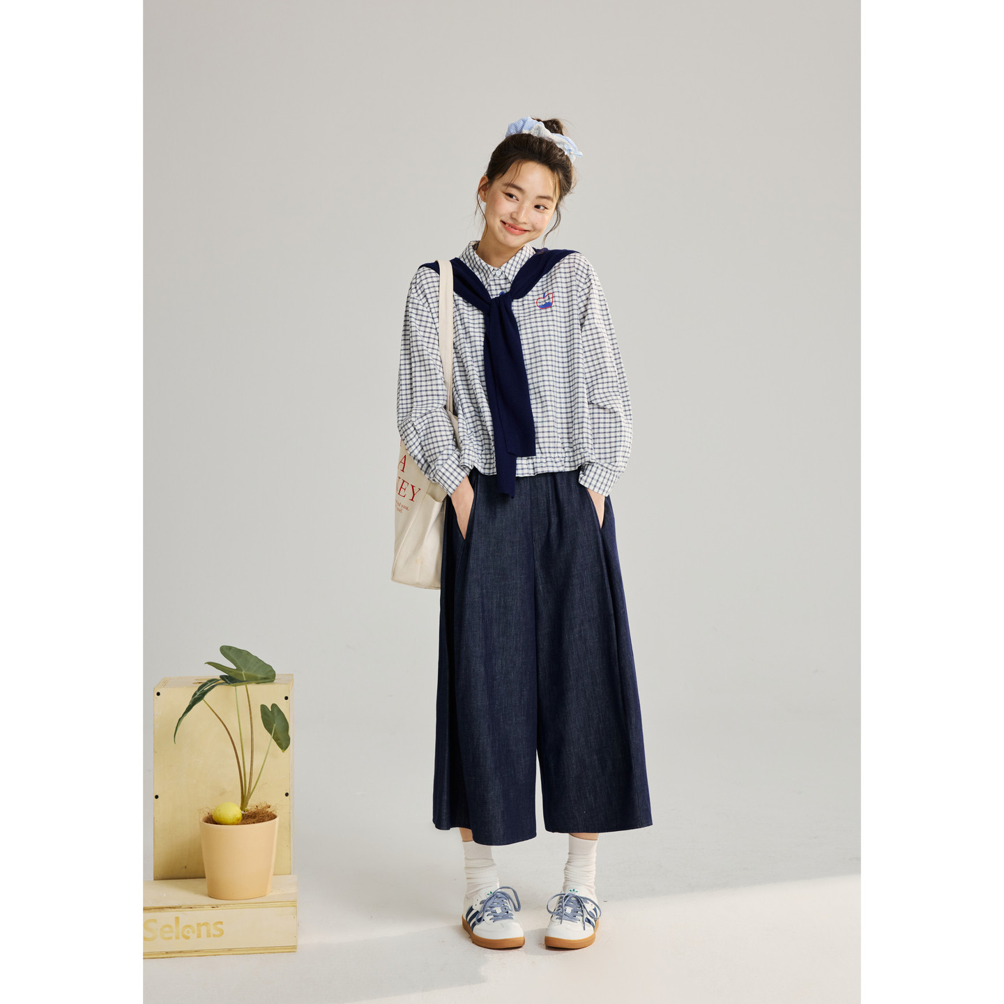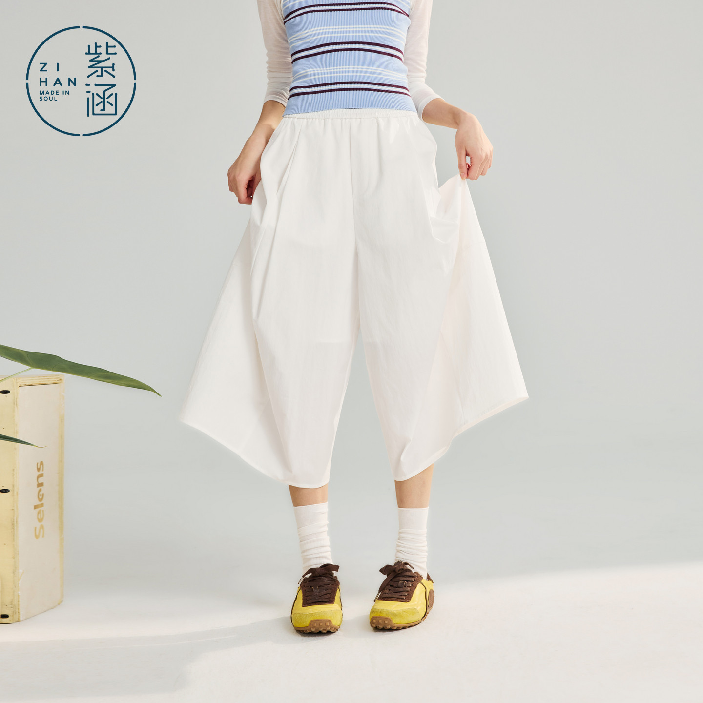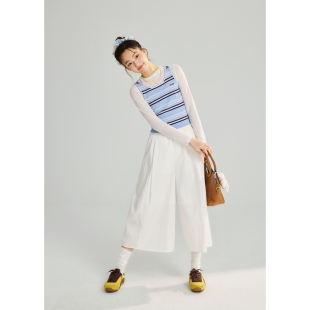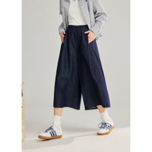 莱赛尔 新款 亚麻 女2026春季 简约宽松休闲裤 紫涵阔腿七分裙裤