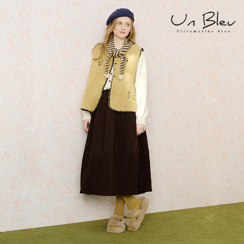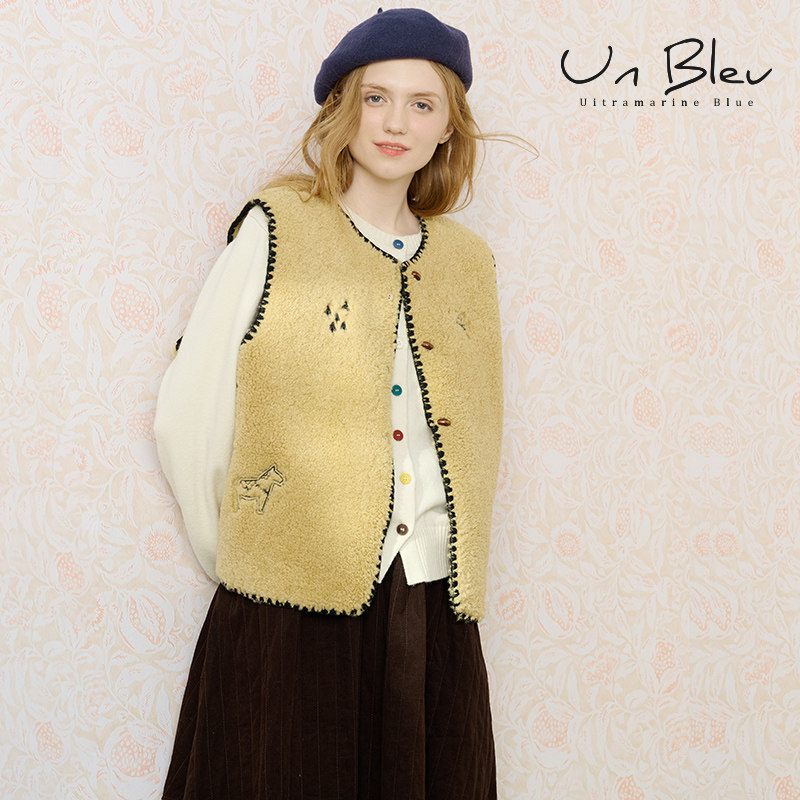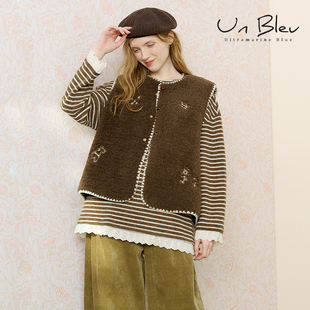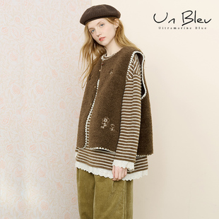上衣 外套宽松高级绣花棕色冬季 UnBleu摇粒绒马甲女新款 2025女装