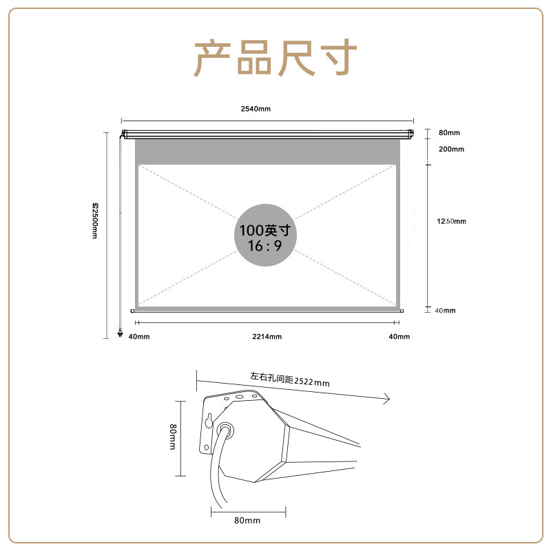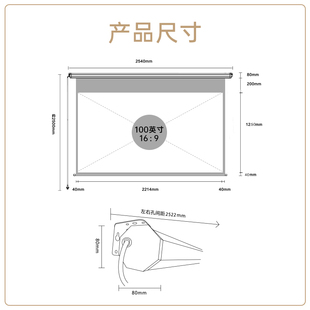 大徽投影幕布电动小白盒光子悬浮拉线三色菲涅尔抗光幕3D 120寸天花嵌入隐藏壁挂幕 4K超高清家用电动升降100