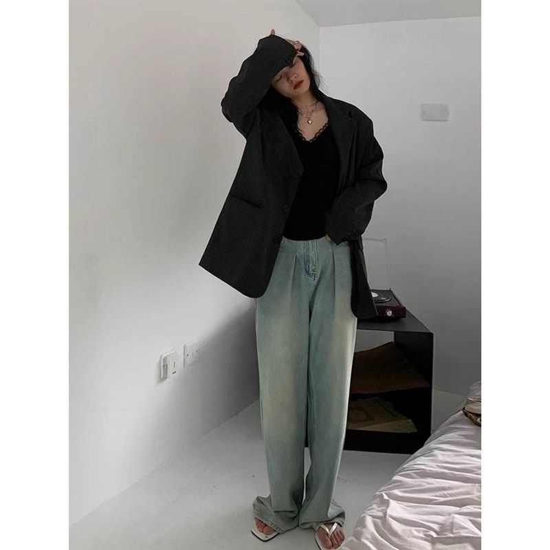 黑色孕期直筒长裤 新款 冬款 外穿休闲宽松西装 女 英氏孕妇裤 裤 子冬季