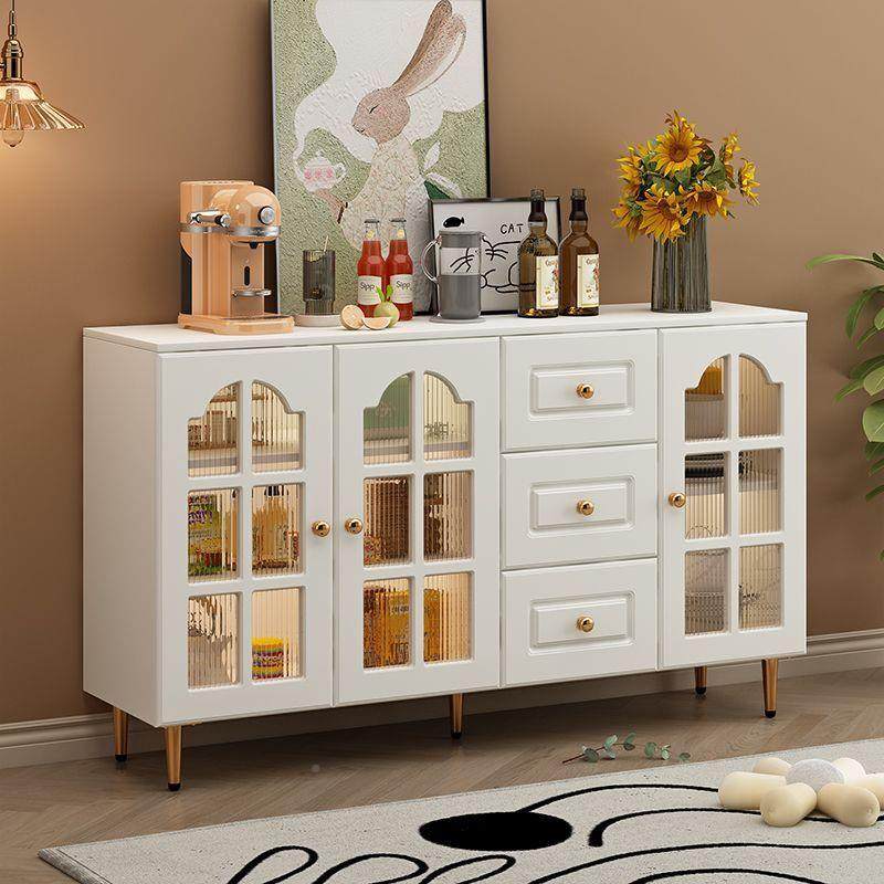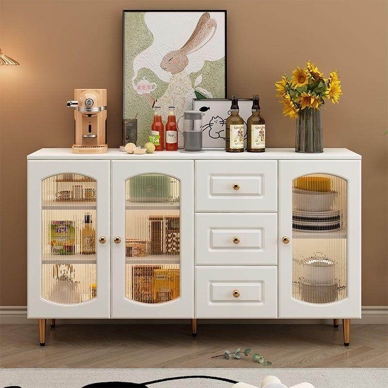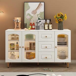 奶油风玻ZVY璃门边柜餐家用欧实木客厅式 储物柜现代简约厨房碗收