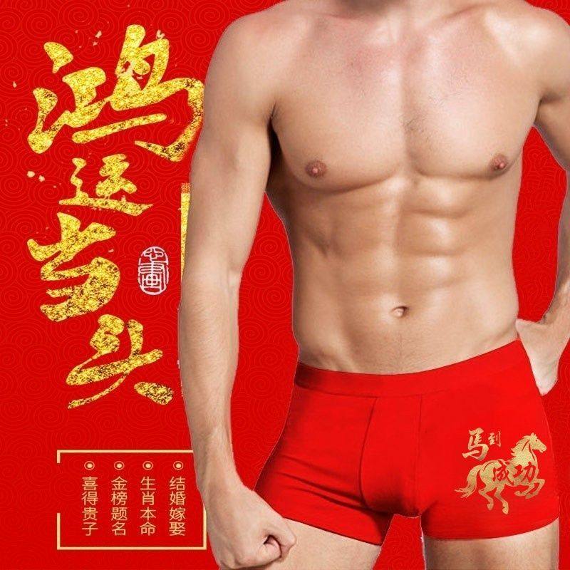 马年本命年男士 头套装 内裤 四角裤 2026马 红色平角透气纯棉大码 新款