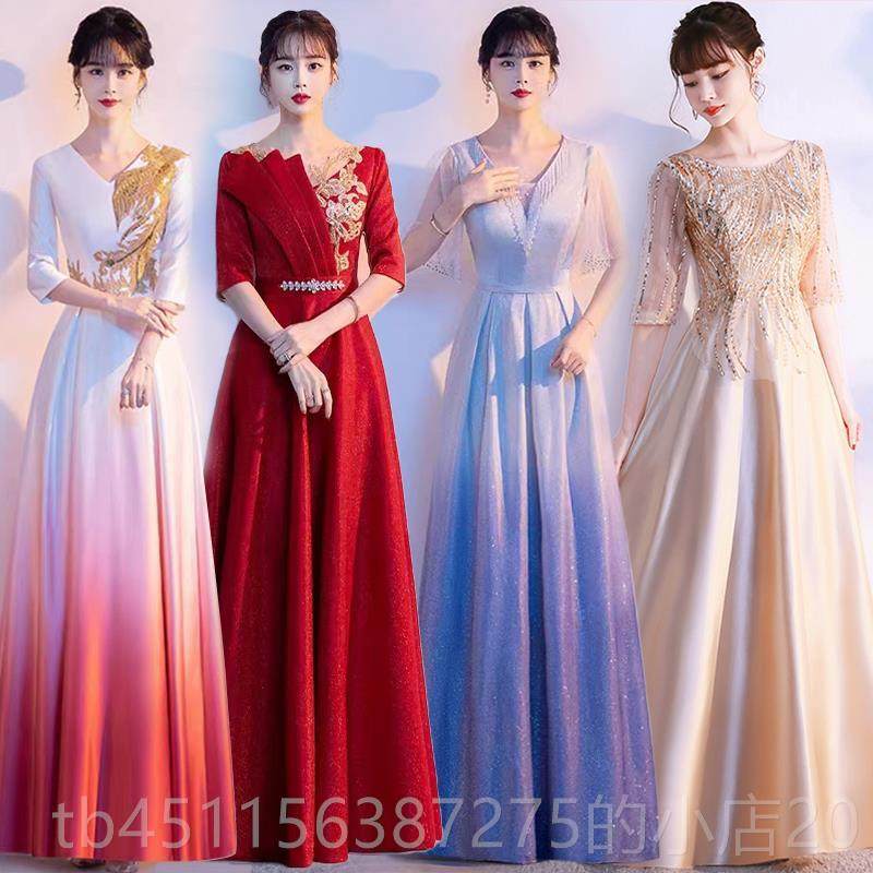高档大合唱出服诗款 歌朗诵主持人长裙表演宴会连衣裙七演一新晚礼