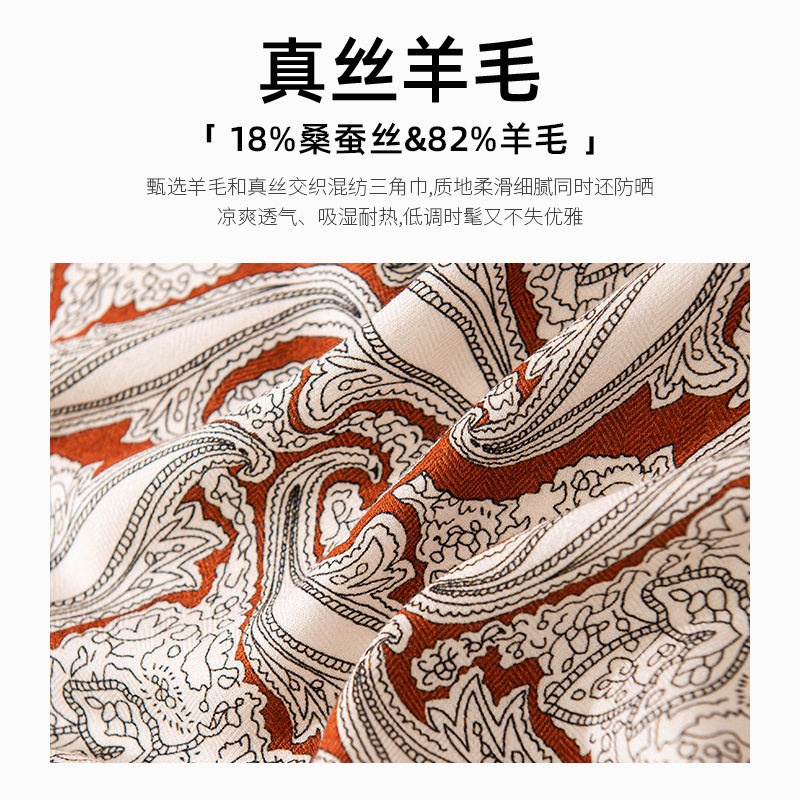 复古中国风三角巾搭配衬衫 护颈系脖防晒领巾高端轻奢真丝羊毛围巾