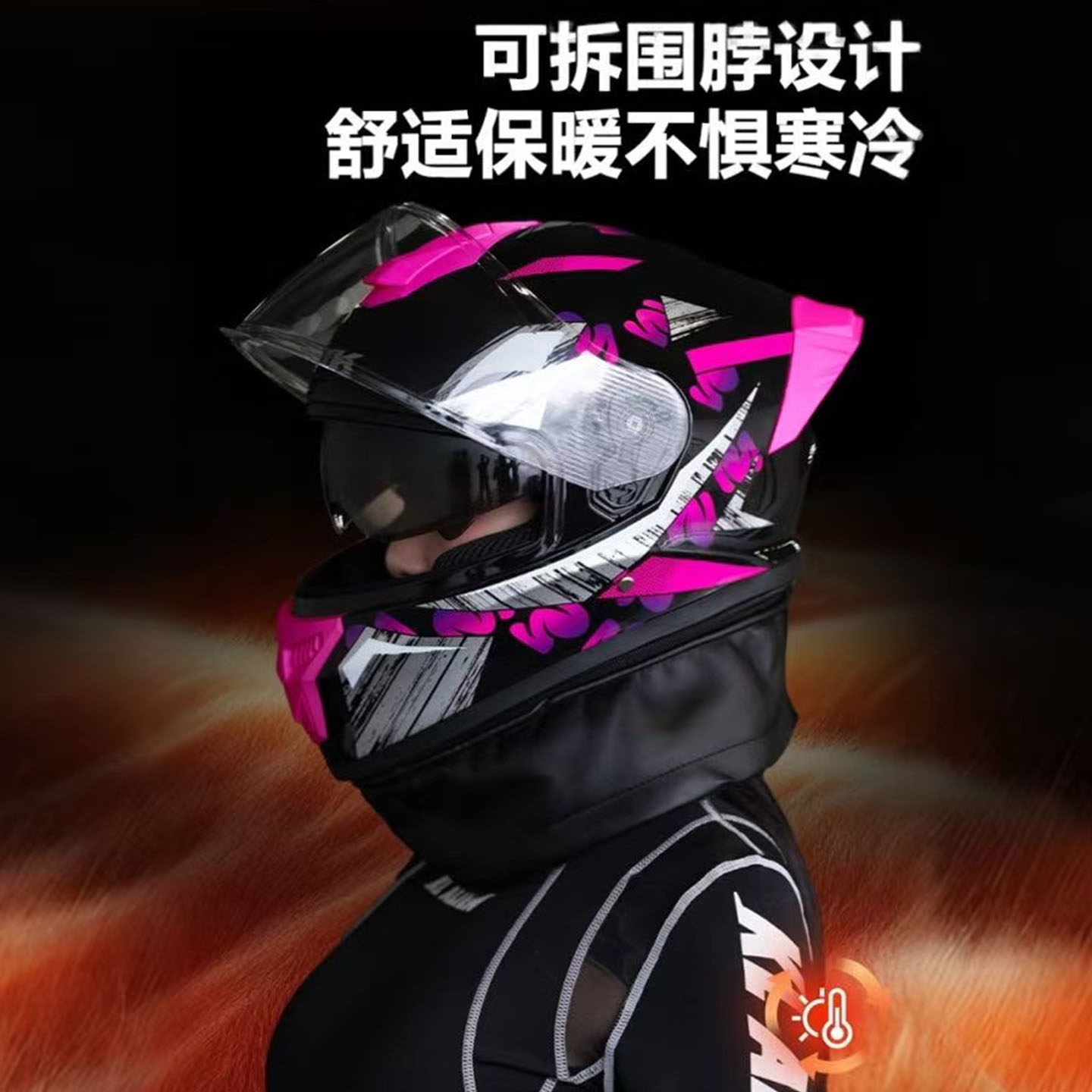 骑行半盔双镜片 保暖男士 电动车头盔女四季 通用带可拆围脖秋天冬季