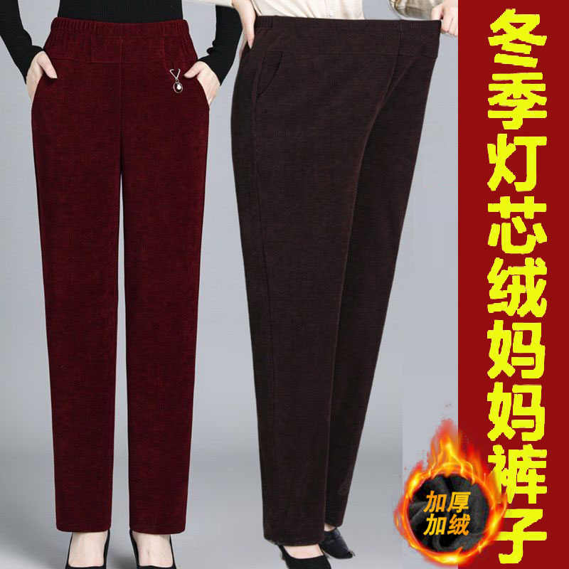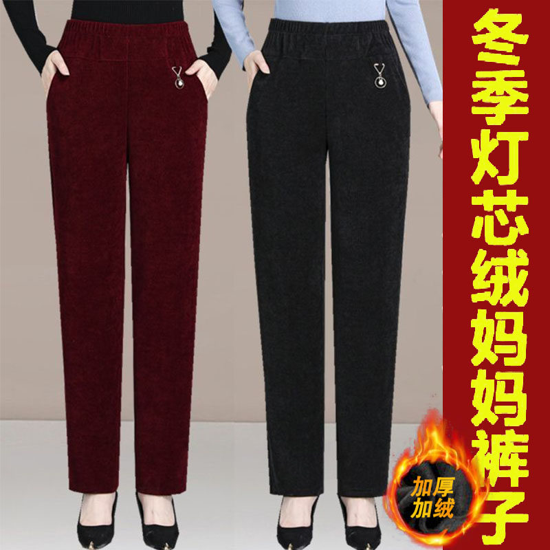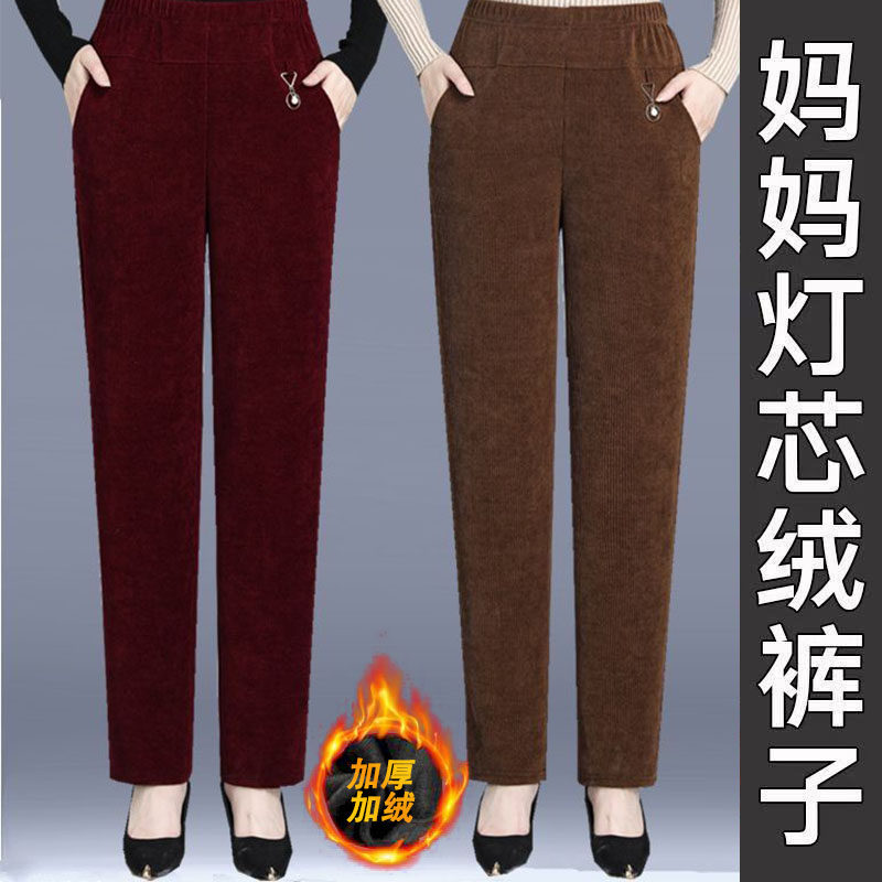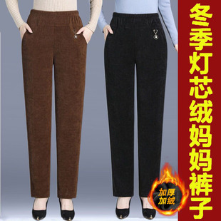 简约大气宽松女裤 加绒加厚灯芯绒女裤 妈妈奶奶条绒高腰直筒秋冬款