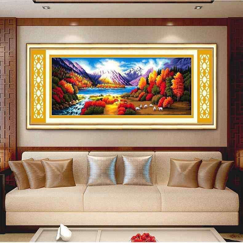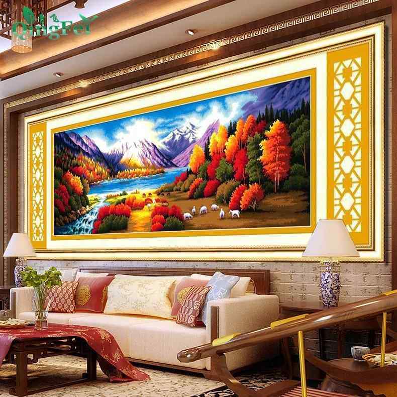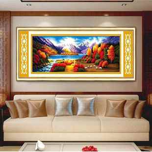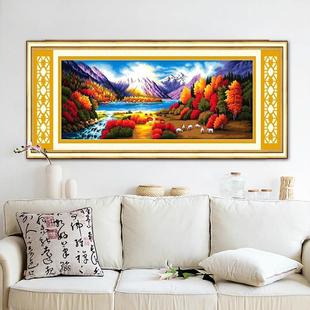 青飞石秋色字伊景人十绣大幅客厅风枫秋水伊人树金色富锦富士山线