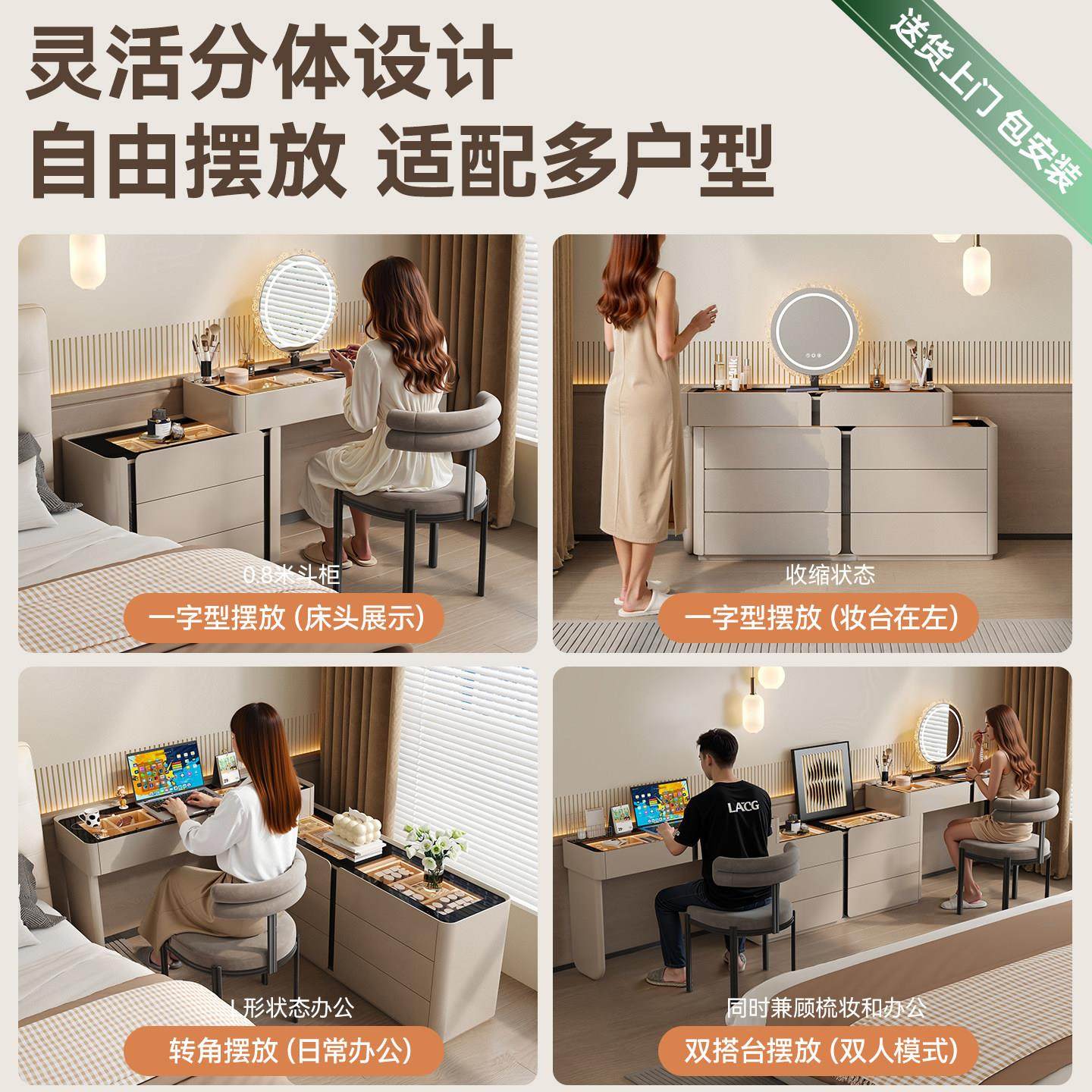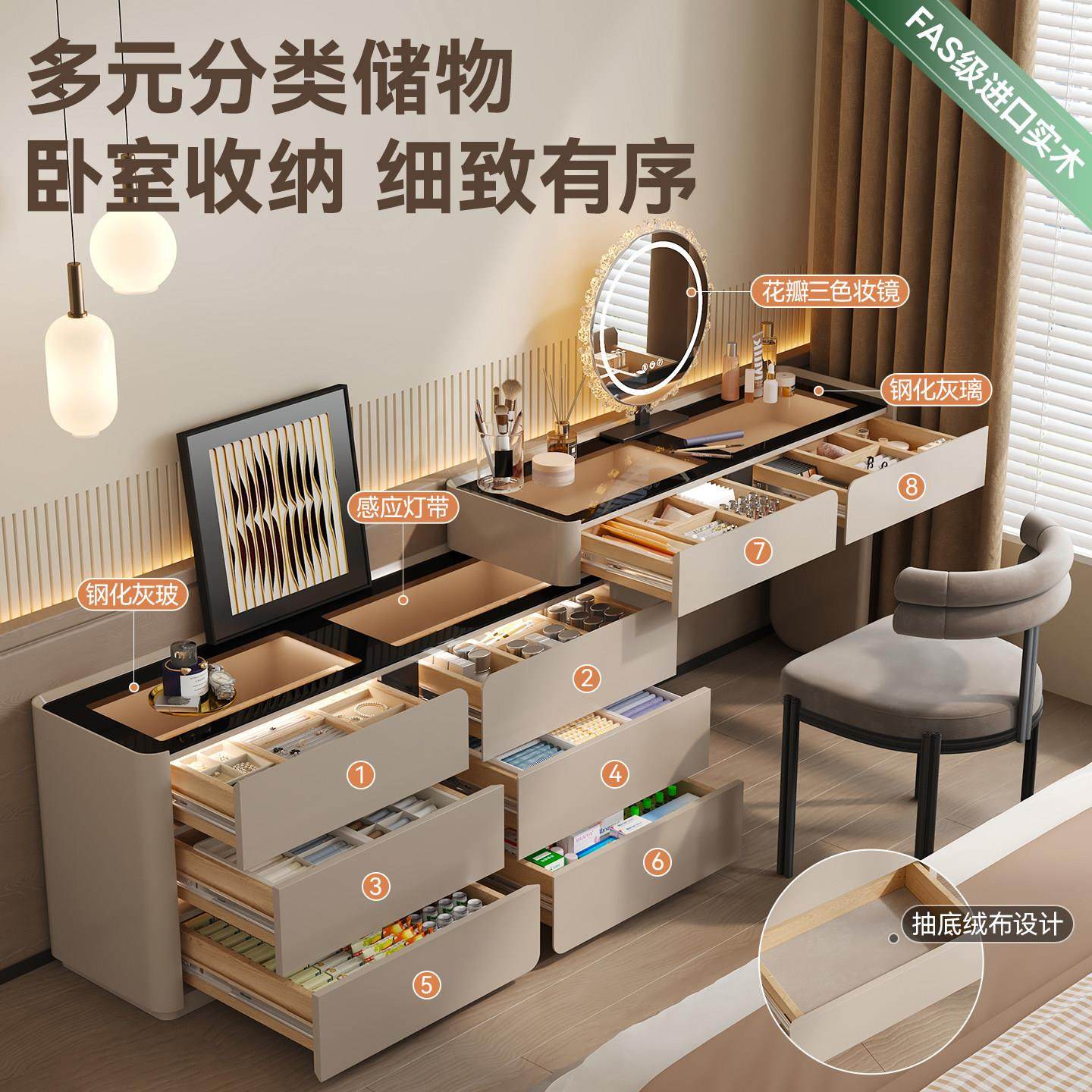 小户型化妆桌台斗柜一体实木伸缩2025新款 卧室床头化妆收纳化妆台