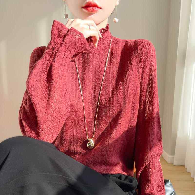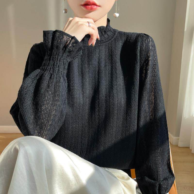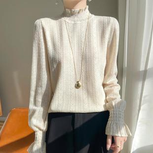 与毛衣剪出温和 高领底衬衫 真顶部1219e 薄白色蕾丝衬衫 花呢风格