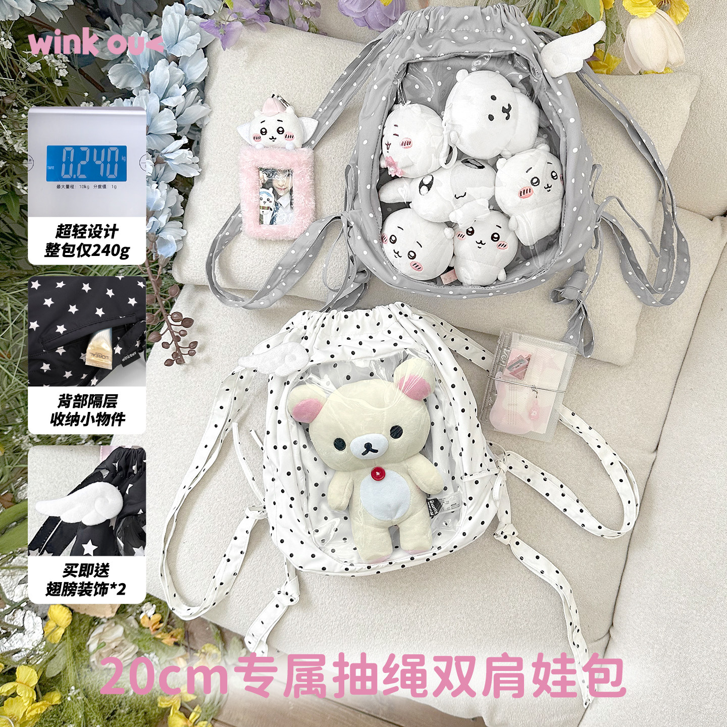 winkouv日常款 小食量小型抽绳痛包双肩包透明可放娃20cm娃包10cm