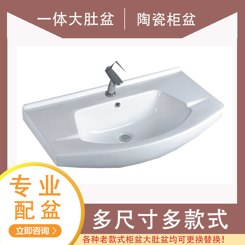 陶瓷更换浴室柜洗手盆洗脸盆一体成型式 台盆 洗面盆大肚盆替换老式
