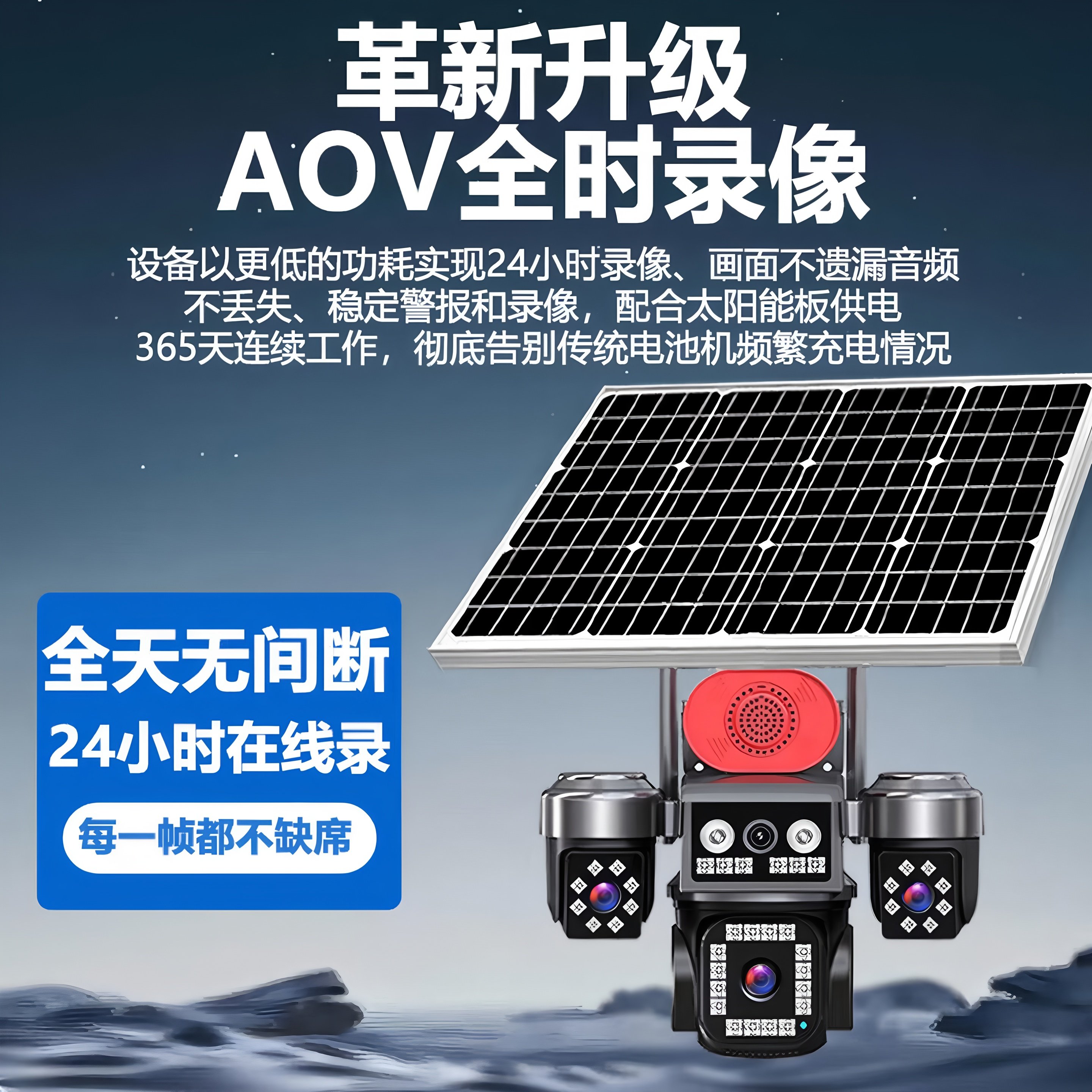 太阳能监控摄像头AOV四镜头4K超高清免流量无电无网360度无死角