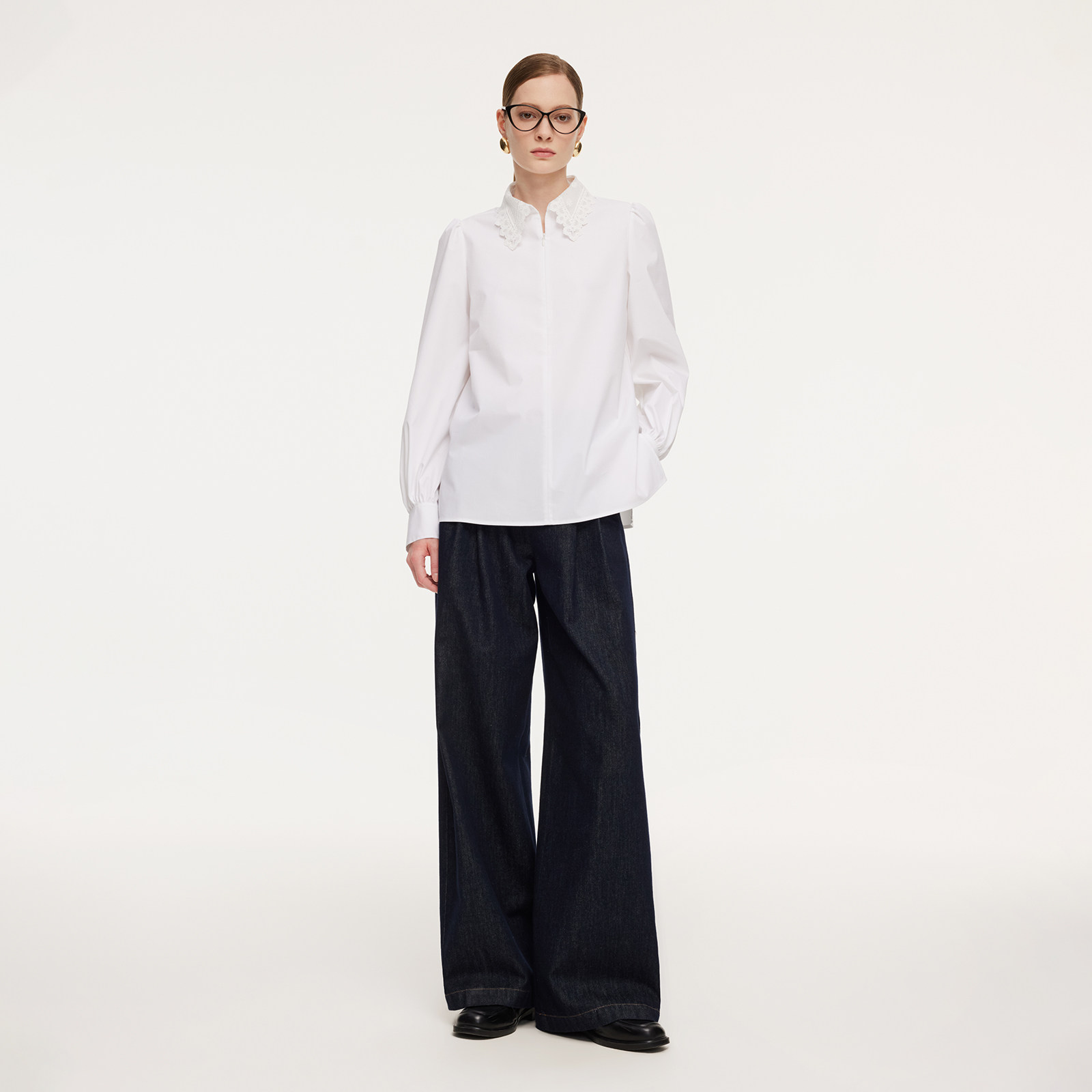 上衣2026新款 女士春季 巨好看花边领衬衣 歌莉娅白色衬衫 首降3折