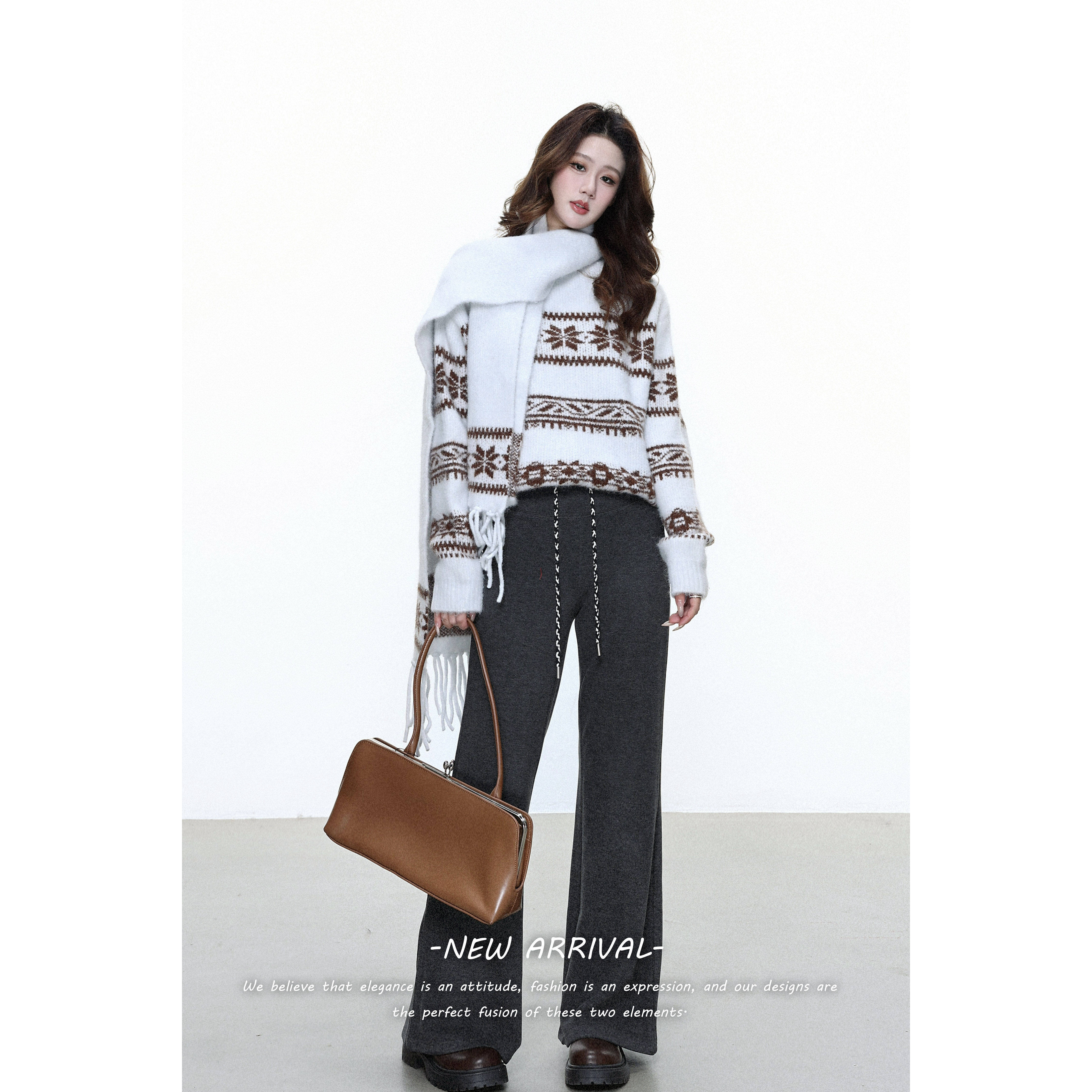 佐梦依加绒加厚休闲裤 弯刀阔腿裤