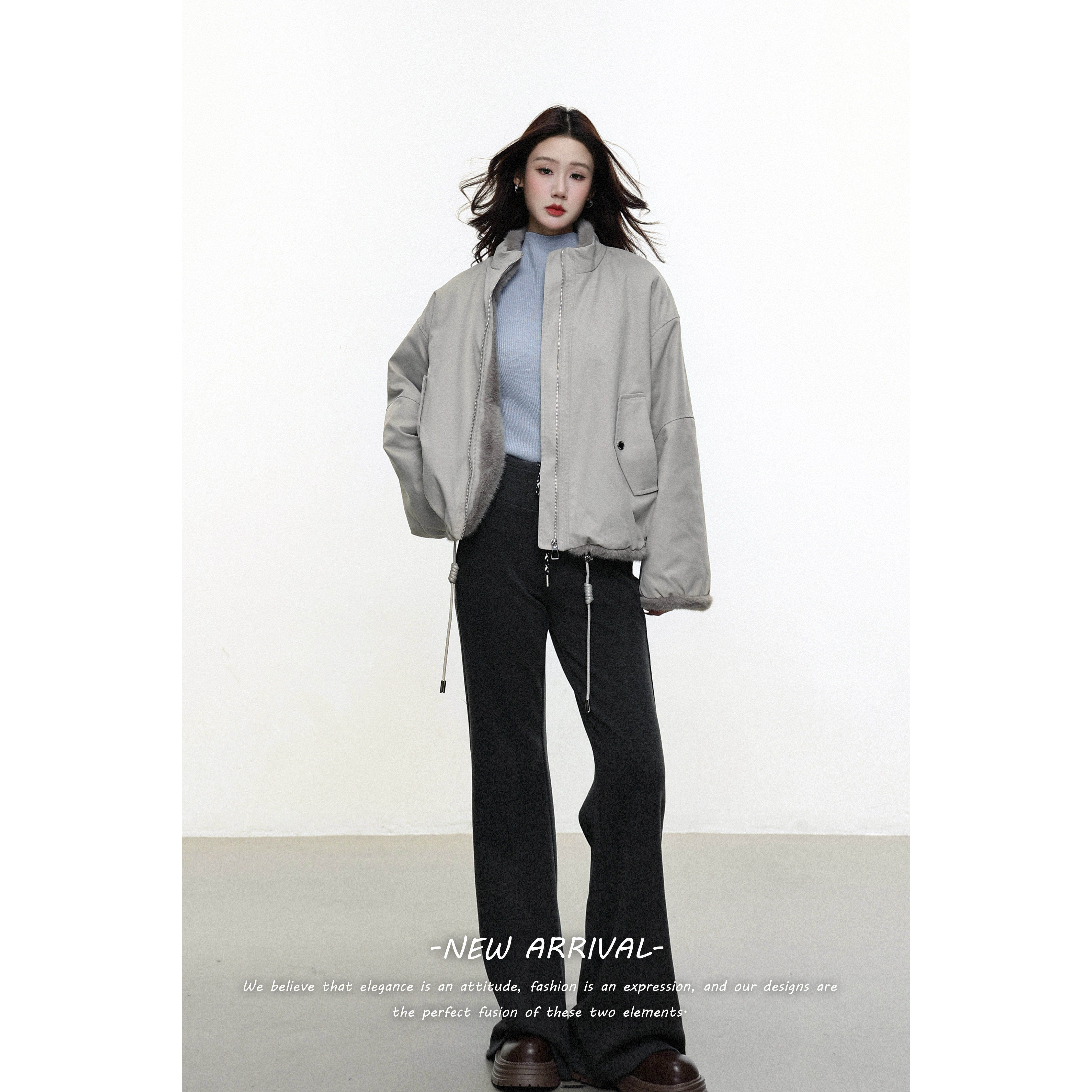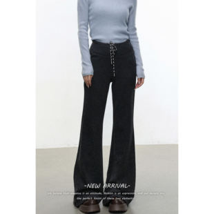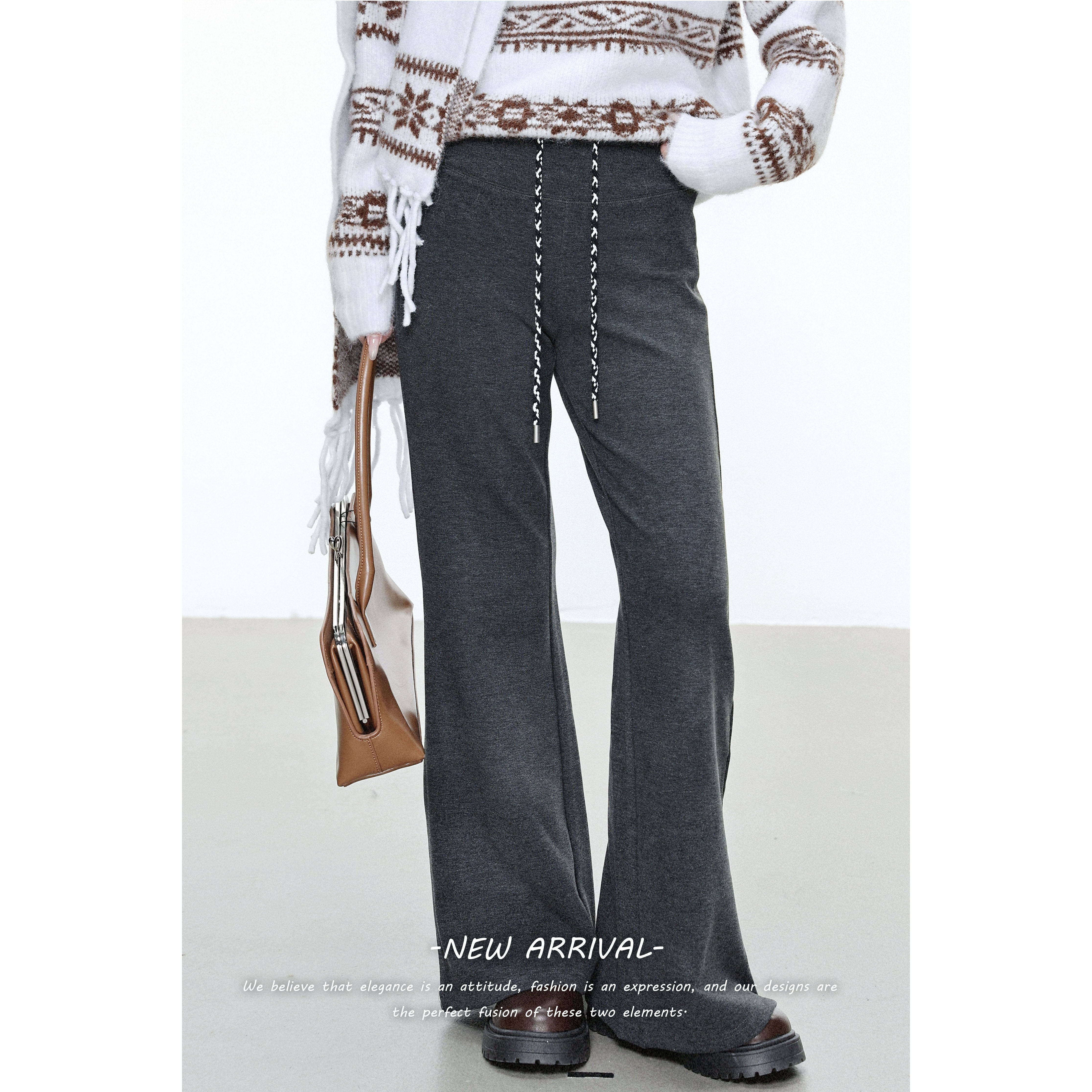 NTS97 女 加绒高腰抽绳宽松显瘦休闲弹力微喇糯米裤