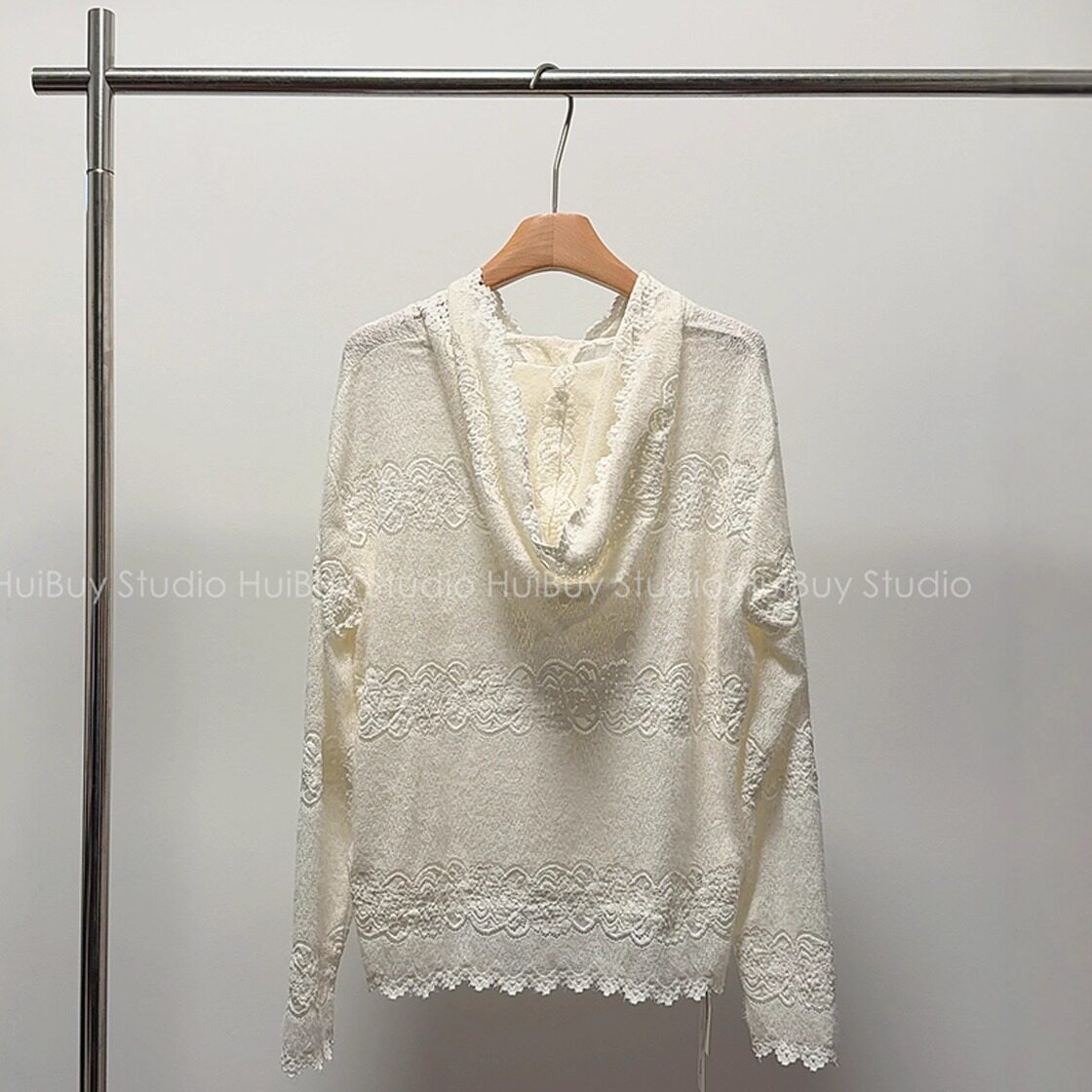 绝美重工钩花蕾丝拼接连帽上衣微弹小衫 冬季 女打底 会buy实拍