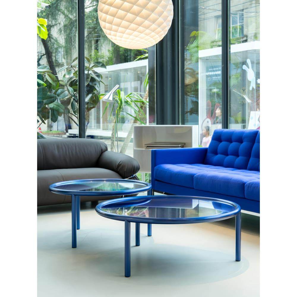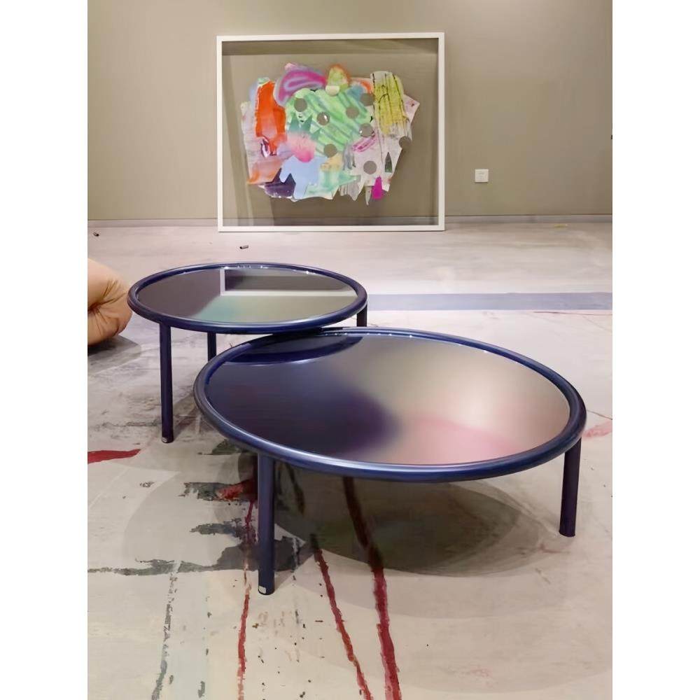 设计款 时尚 红色圆桌包豪斯咖啡桌 玻璃彩色茶几组合客厅个性 意式