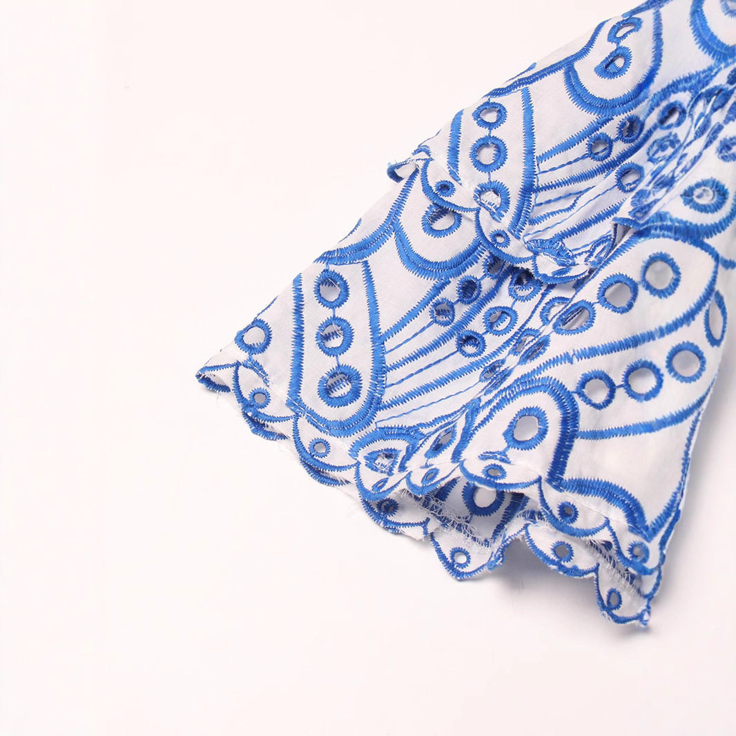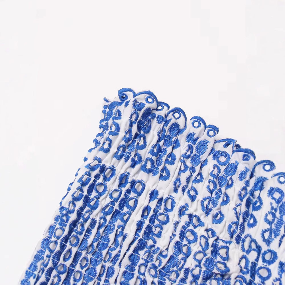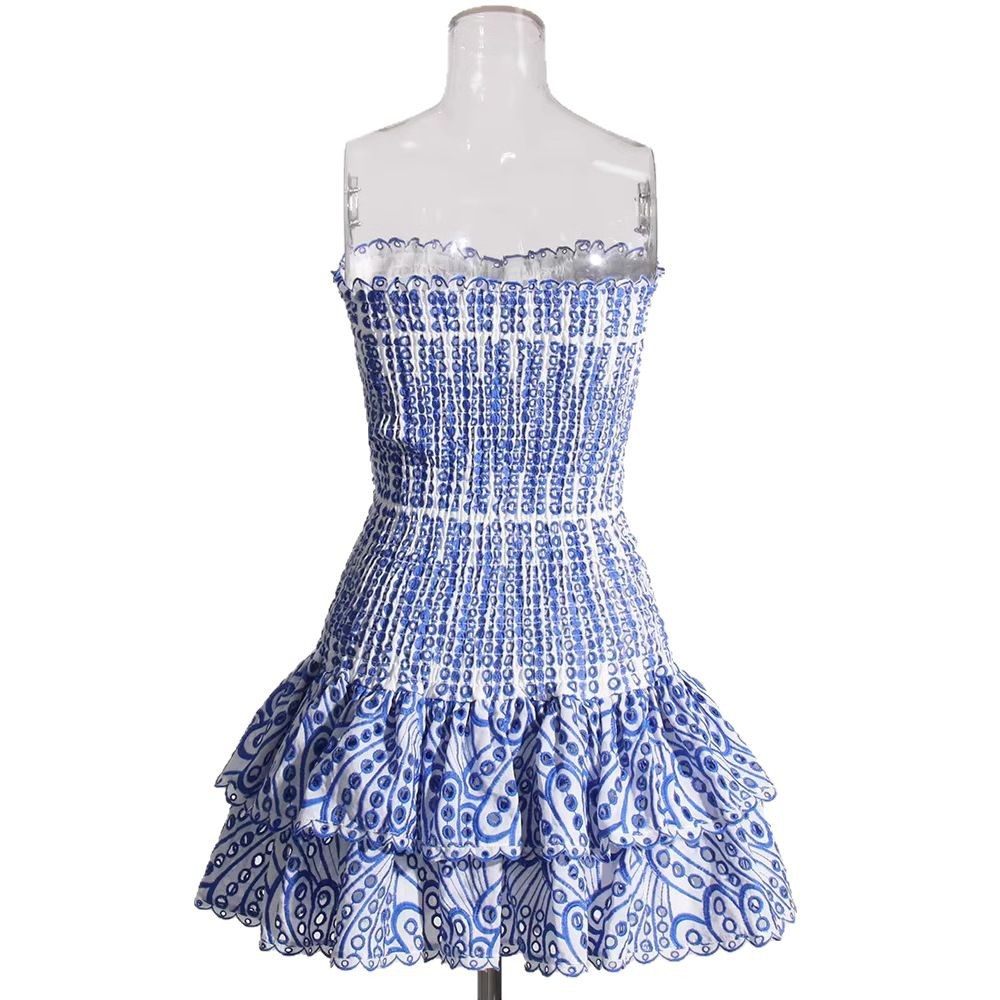 跨境欧美波西米亚度假风荷叶边抹胸小个子刺绣连衣裙女收腰蛋糕裙