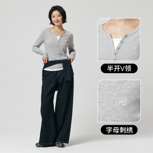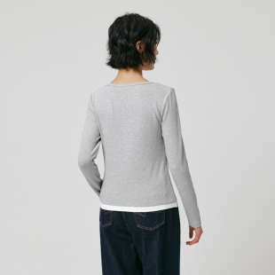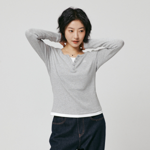 新款 内搭2026年春季 假两件韩系撞色T恤 T恤上衣打底衫 热风女士长袖