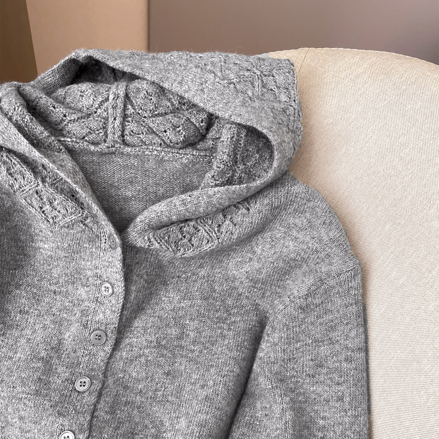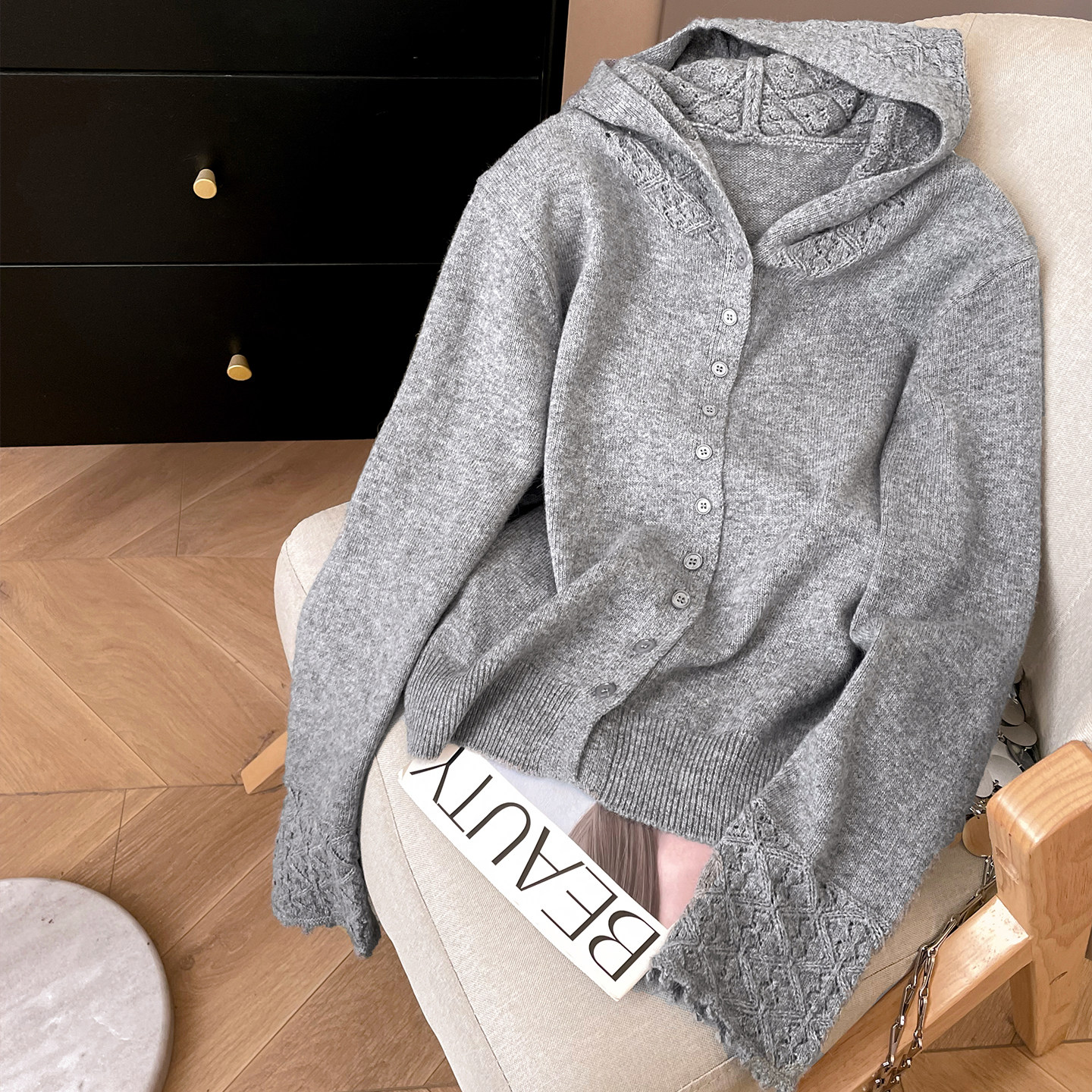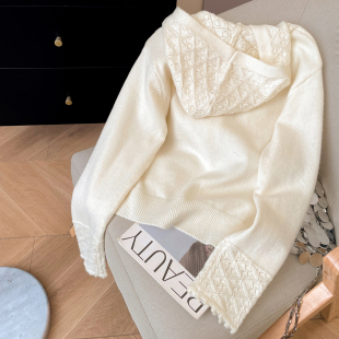 宽松慵懒风羊毛针织开衫 小C家 冬季 2025新款 钩花镂空连帽毛衣女款