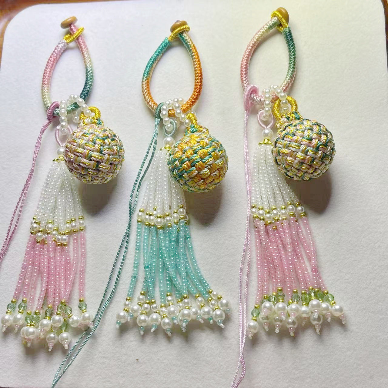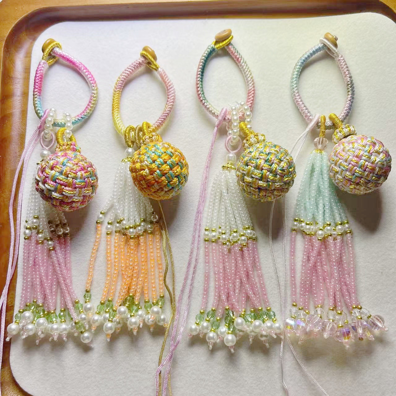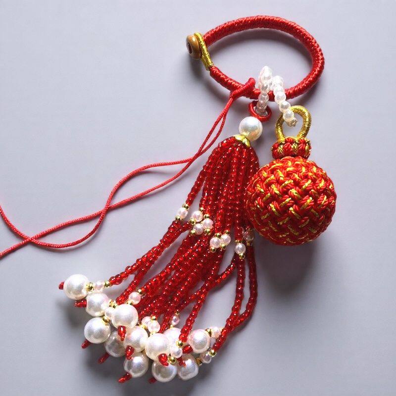 手工编织有 必应转运球包包挂件珠珠流苏饰品挂件包挂DIY挂饰 球
