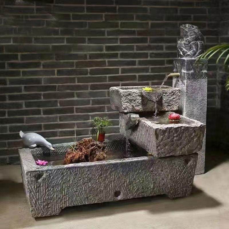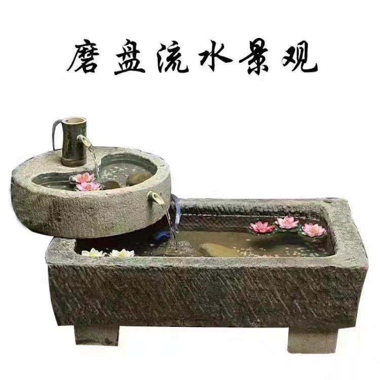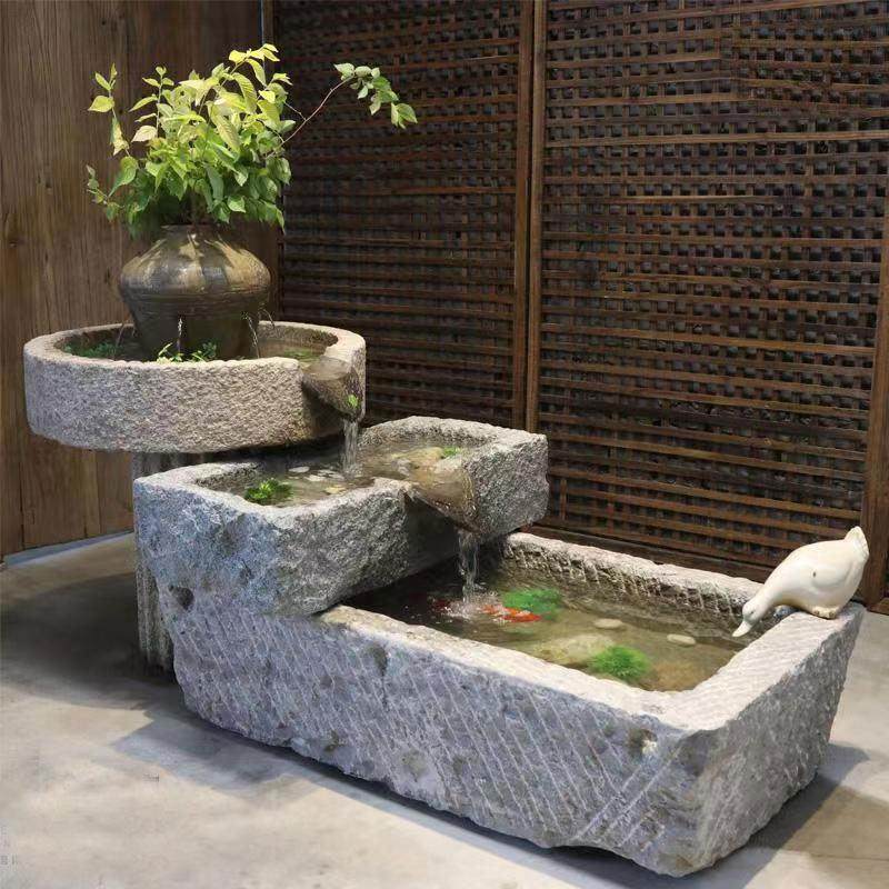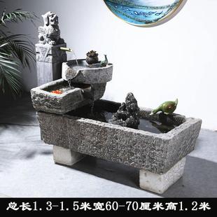 老石槽鱼缸流水摆件石磨水景牛槽马槽老石头鱼缸户外庭院养鱼造景