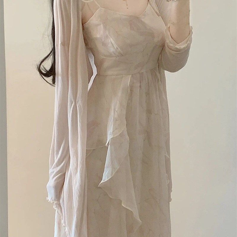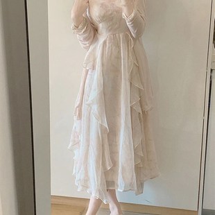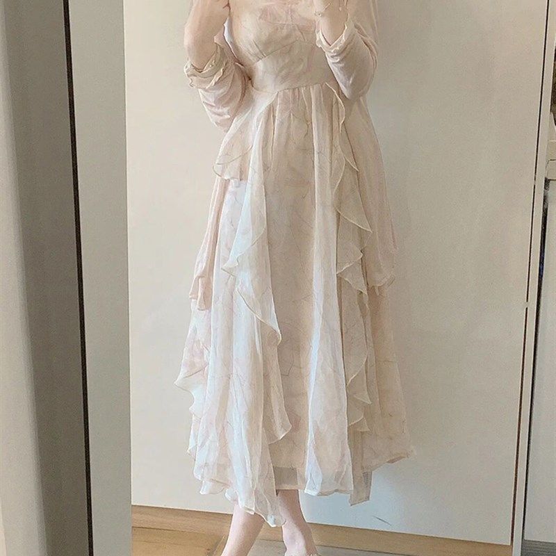 圆领减龄米白色长袖 新中式 连衣裙女D0079 秋季 2025新款