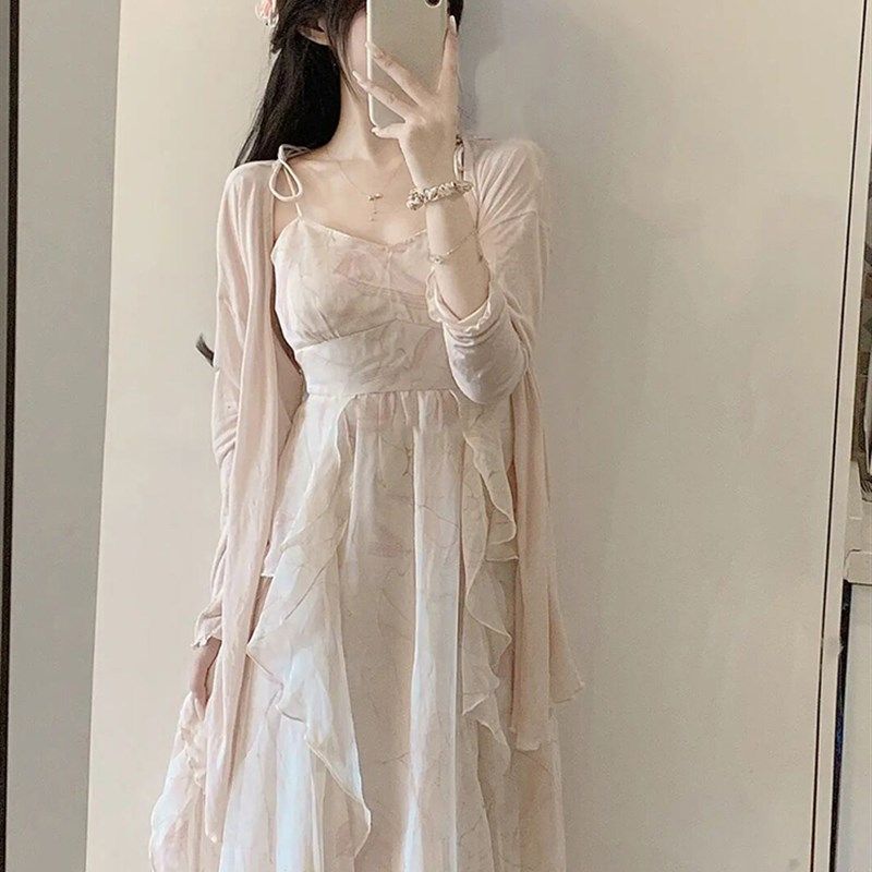 Palglg甜美风黑色丝绒背心连衣裙女冬季 木耳边直筒裙子 高级感法式