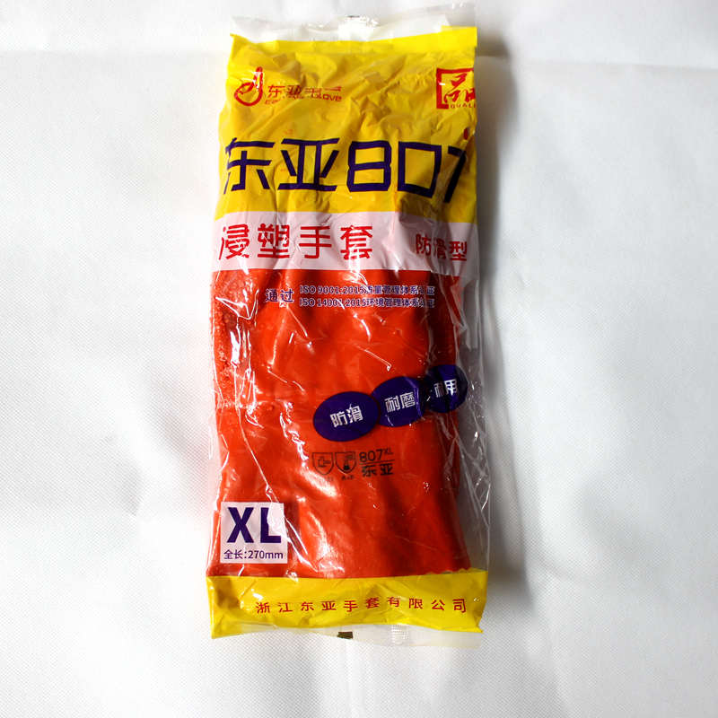 东亚807止滑手套 防水耐油电镀防腐工业耐酸碱防护浸塑胶手套