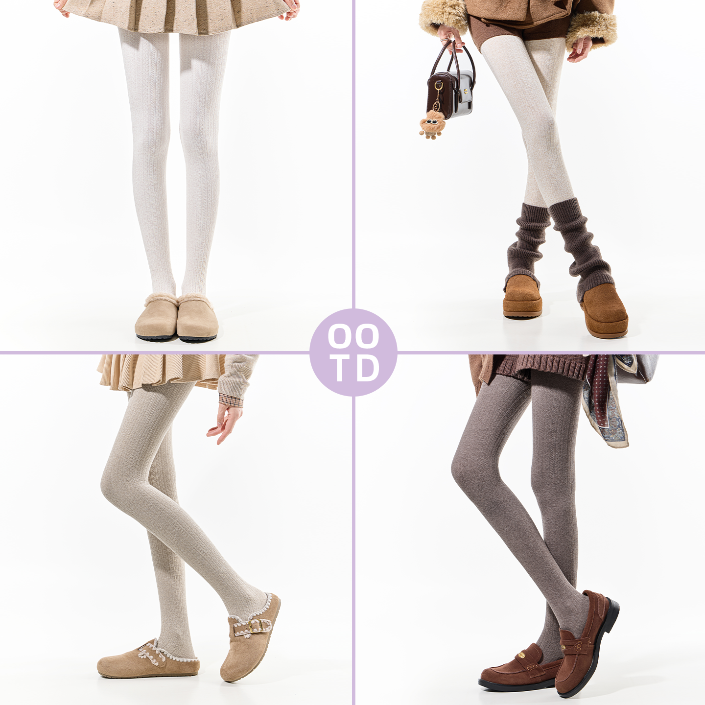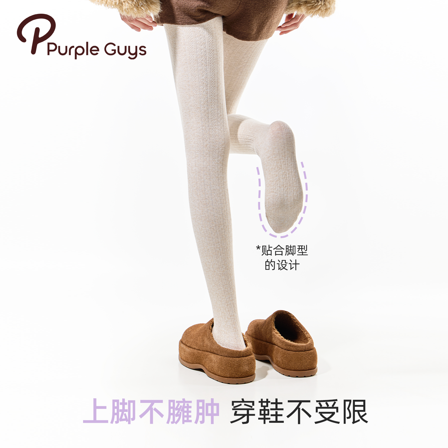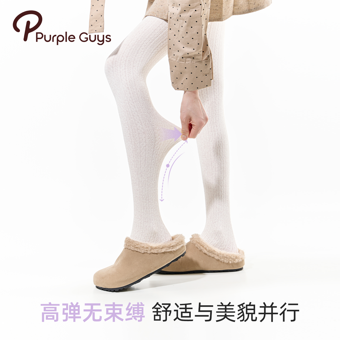 袜 加绒加厚保暖防勾丝打底裤 purpleguys麻花纹奶白色连裤 袜女冬季
