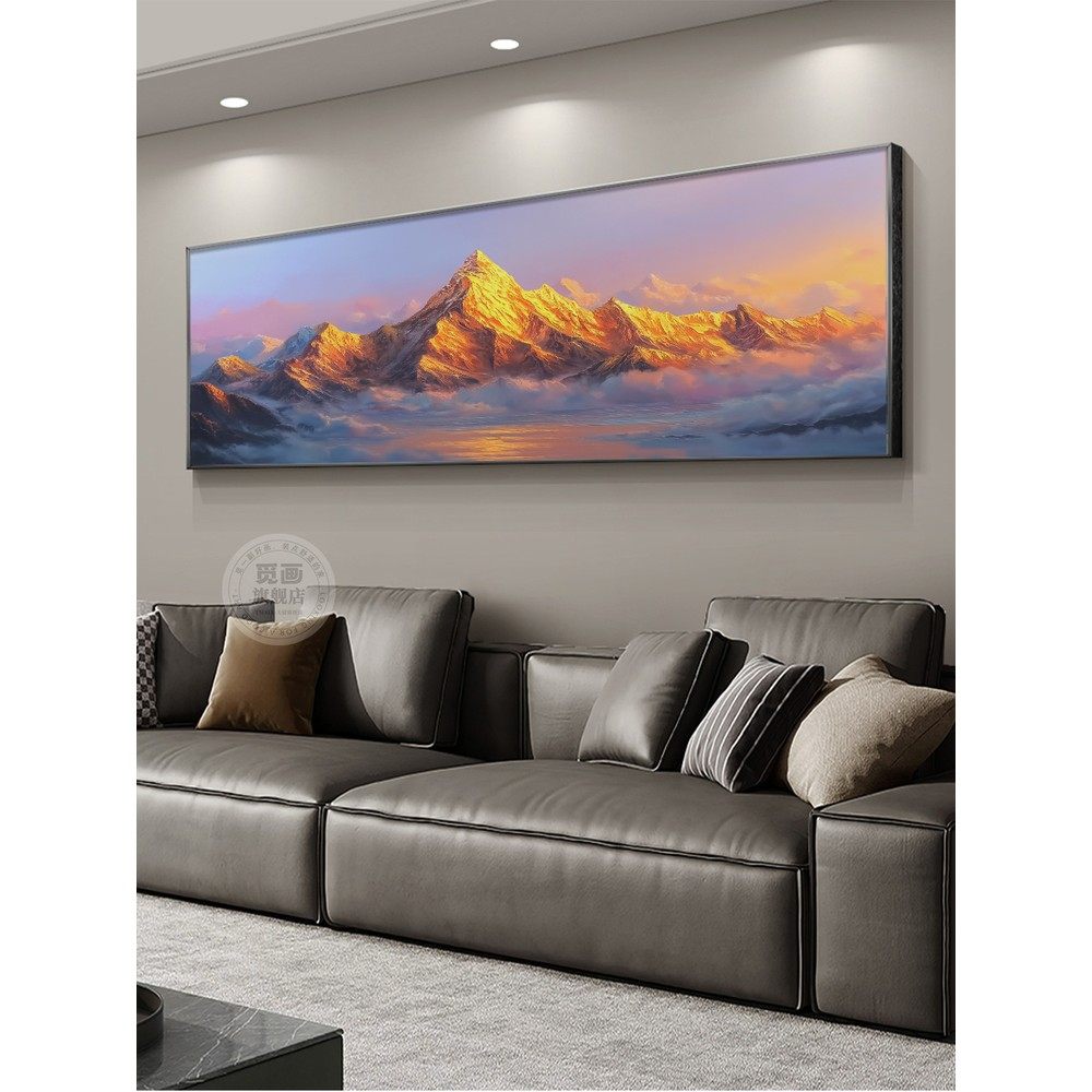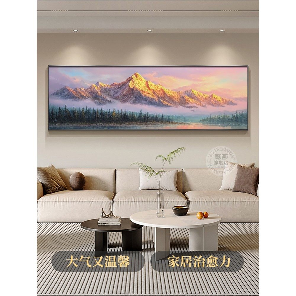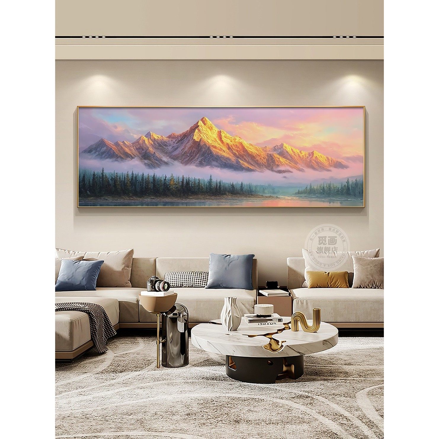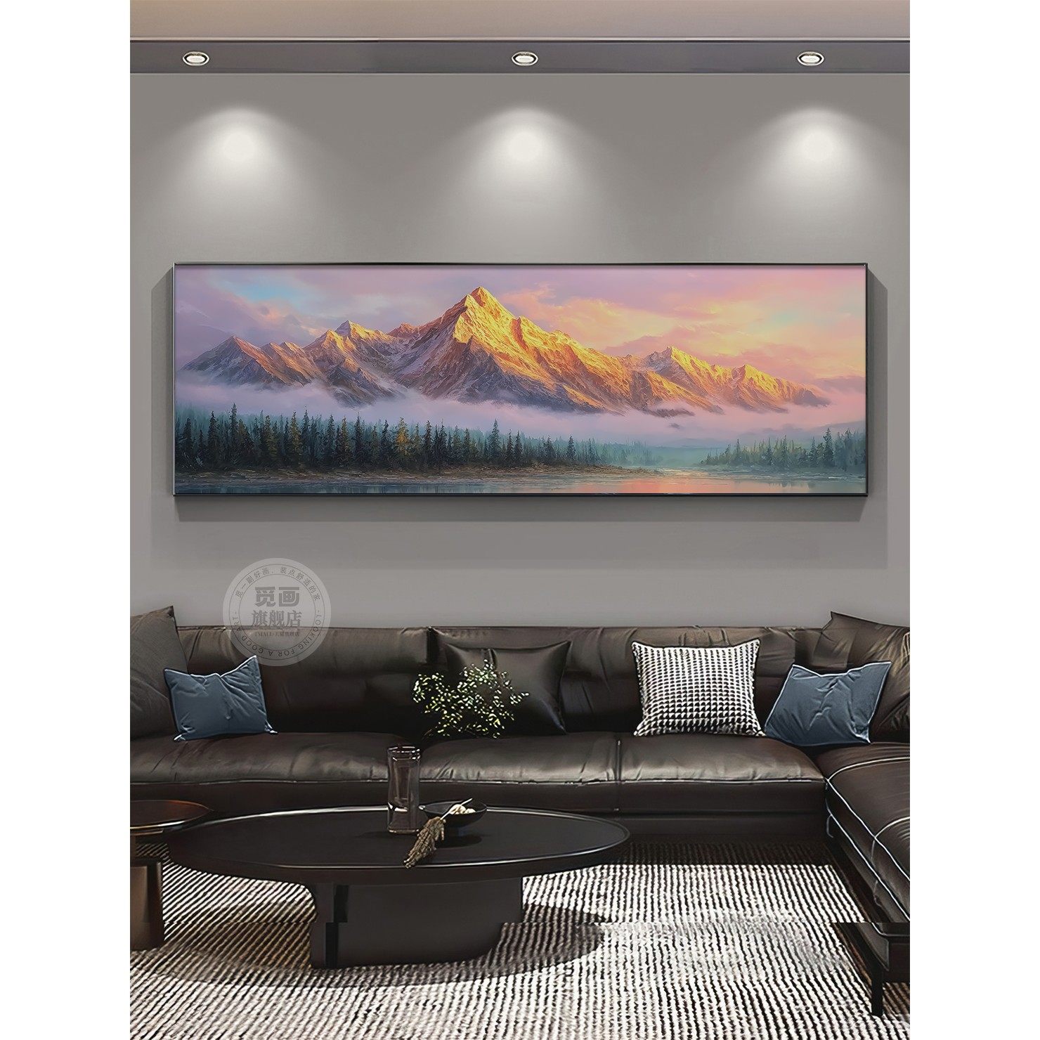 日照金山玄关装 饰画大芬村手绘油画客厅挂画高级感入户正对门壁画