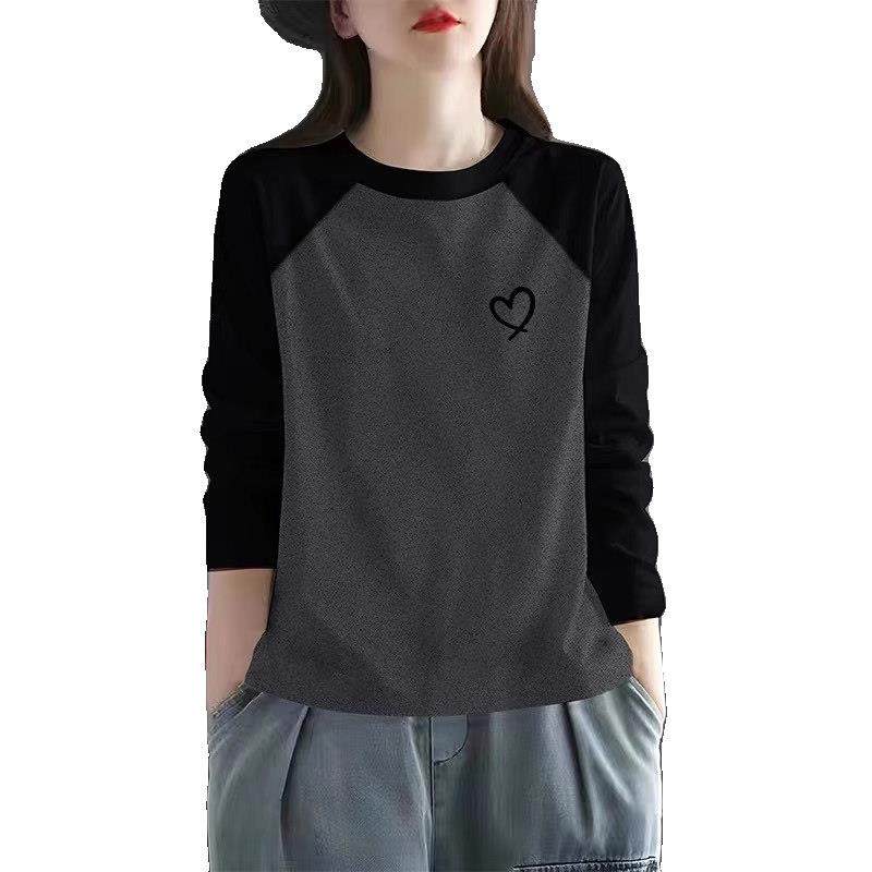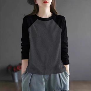 时尚 宽松内搭打底衫 拼接上衣 t恤女2025春秋新款 撞色插肩纯棉长袖