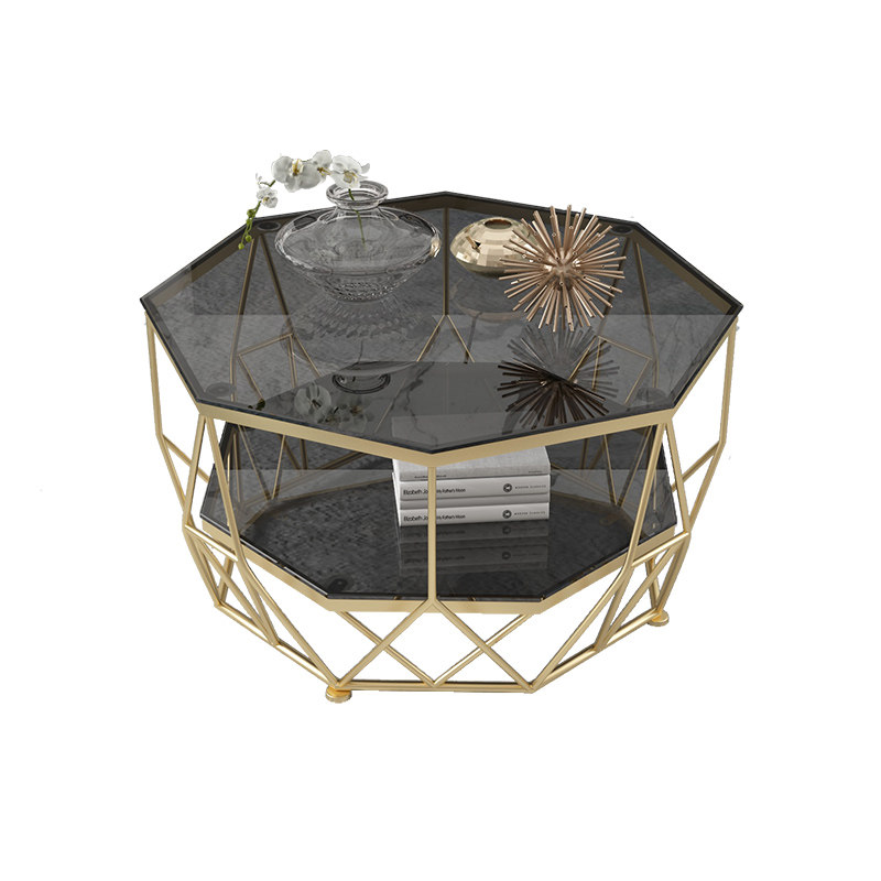 客厅茶几双层简约现代圆形钢化玻璃大小户型时尚 茶几 创意几何整装