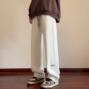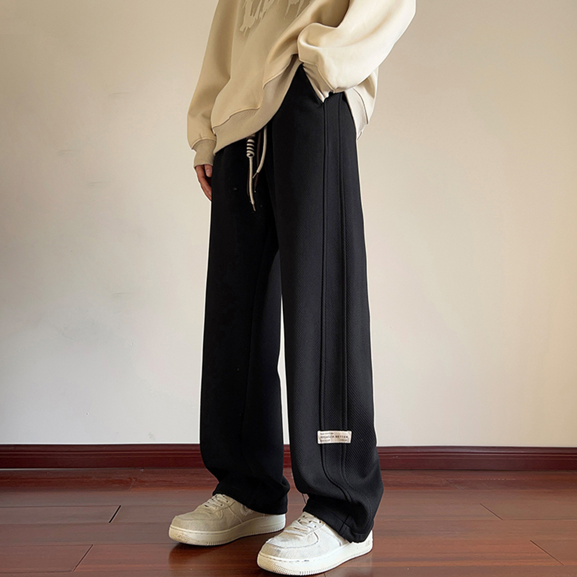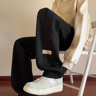 直筒阔腿加绒显瘦休闲裤 胖胖哥美式 宽松大码 男冬季 华夫格运动卫裤