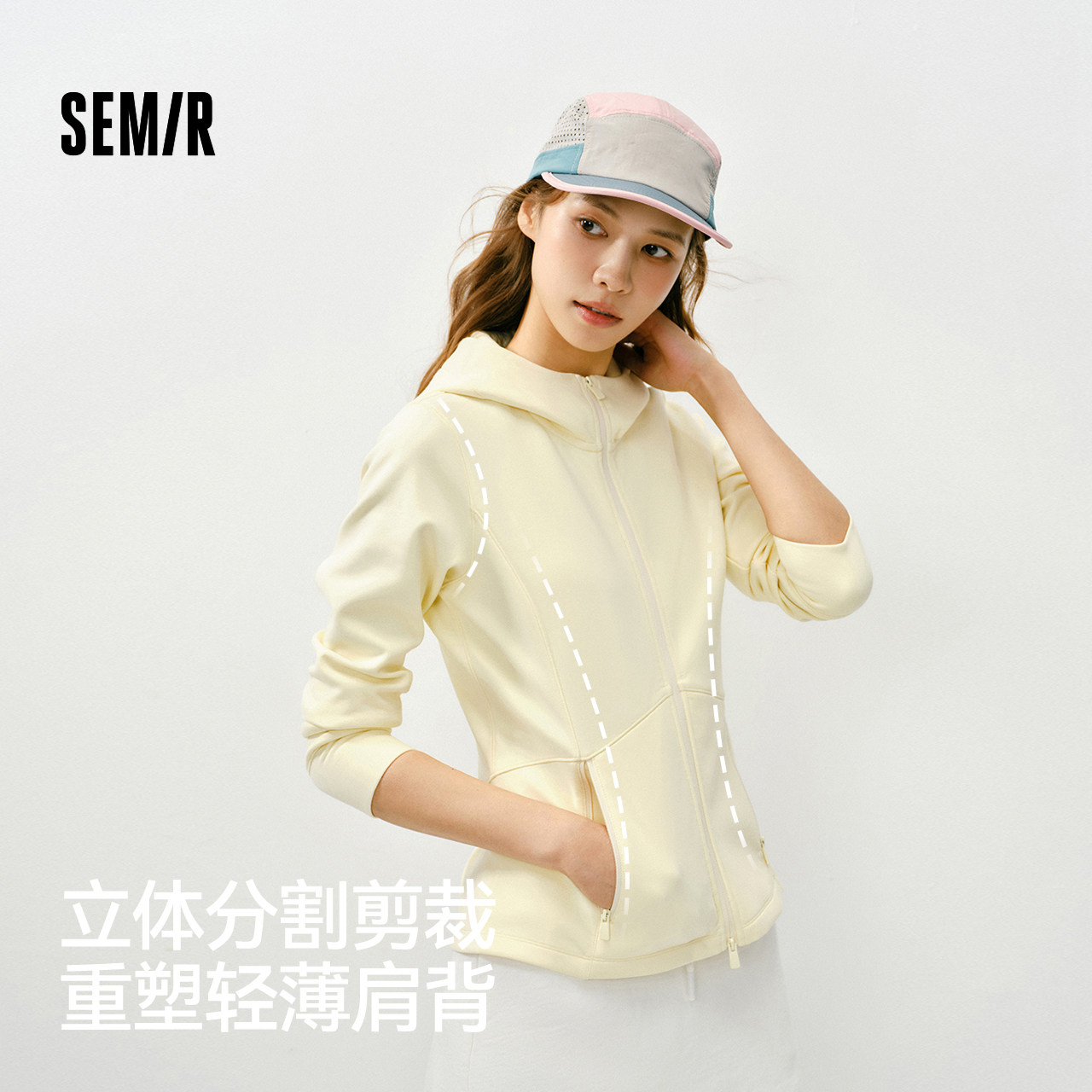 简约温柔夹克 纯色磨毛分割紧身连帽2026新款 森柔 森马外套女春季