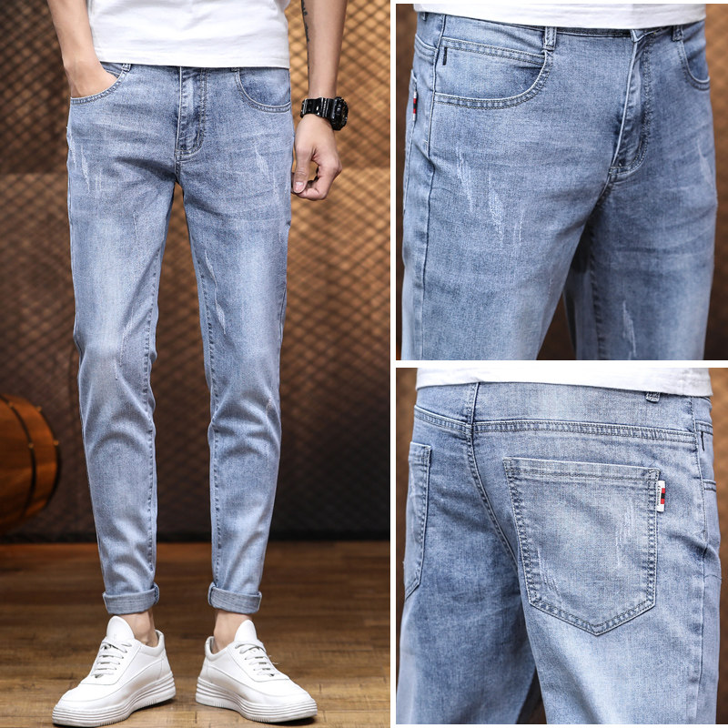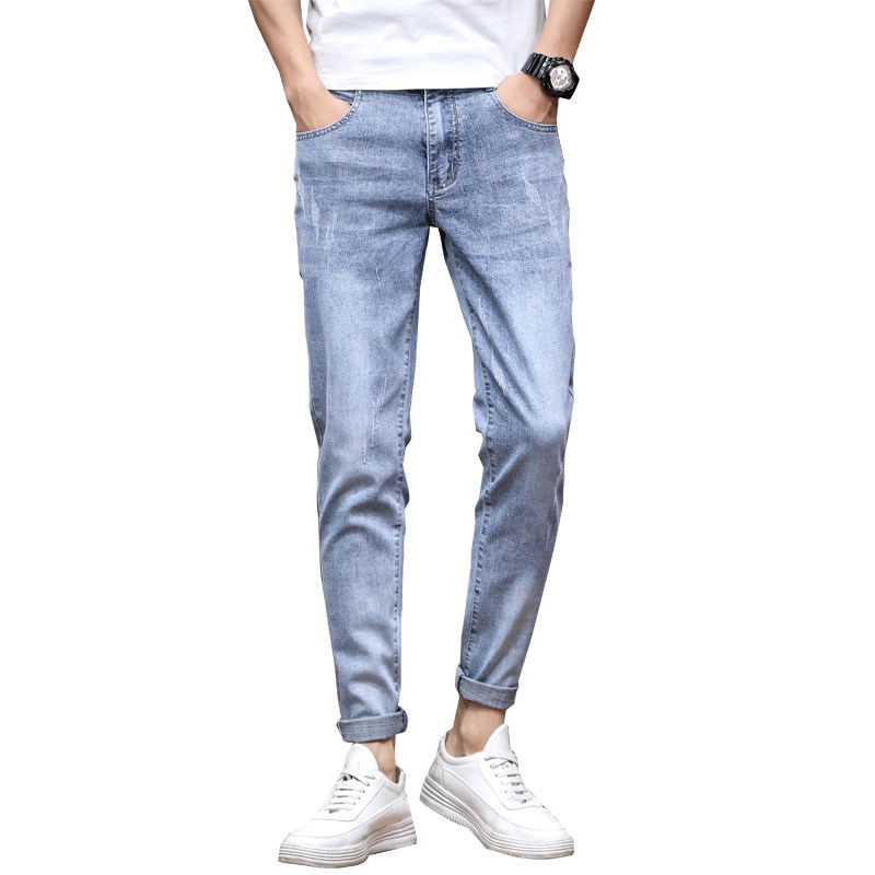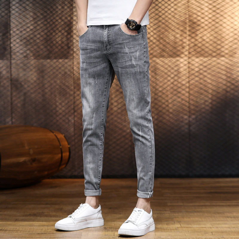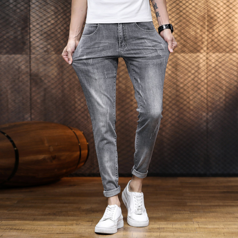 2021夏季 小脚休闲裤 新款 薄款 弹力显廋潮 九分牛仔裤 灰色韩版 男修身