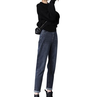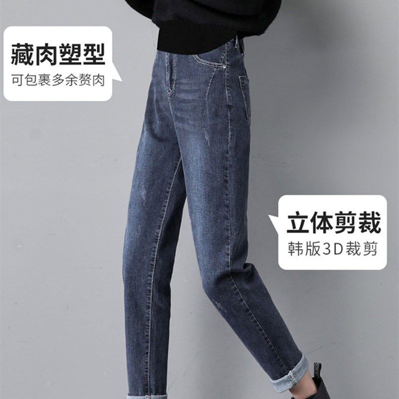 子加肥200斤小脚裤 加大码 牛仔宽松外穿长裤 春秋托腹裤 孕妇老爹裤