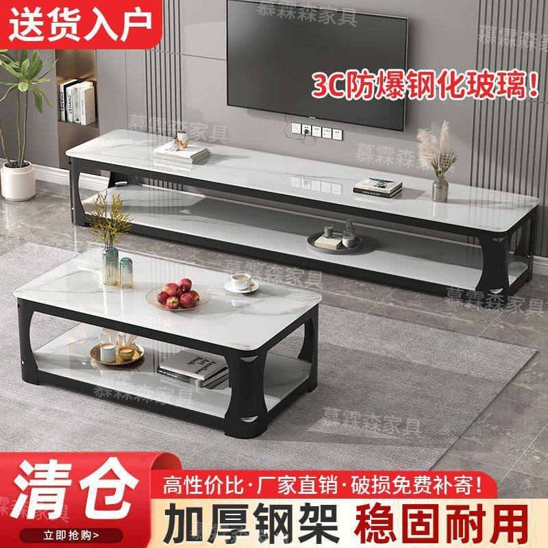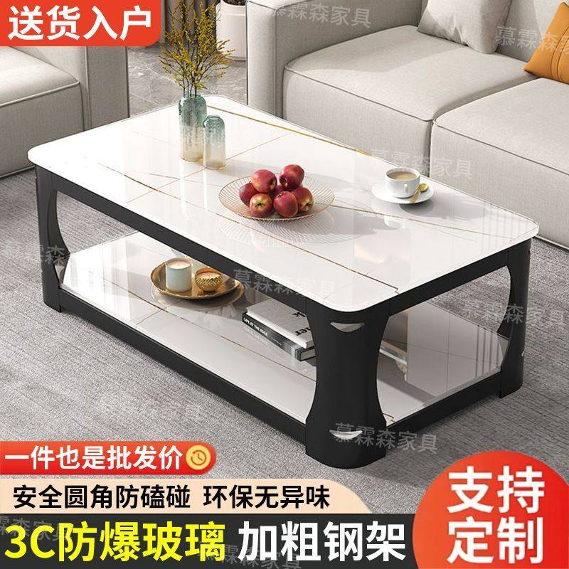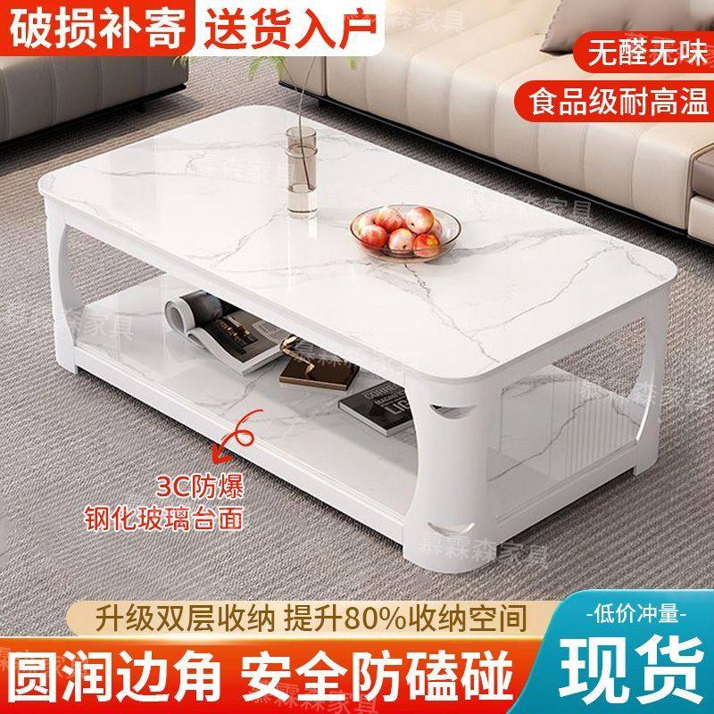 钢化玻璃茶几客厅家用小户型简约现代长方形茶台大理石茶桌双层