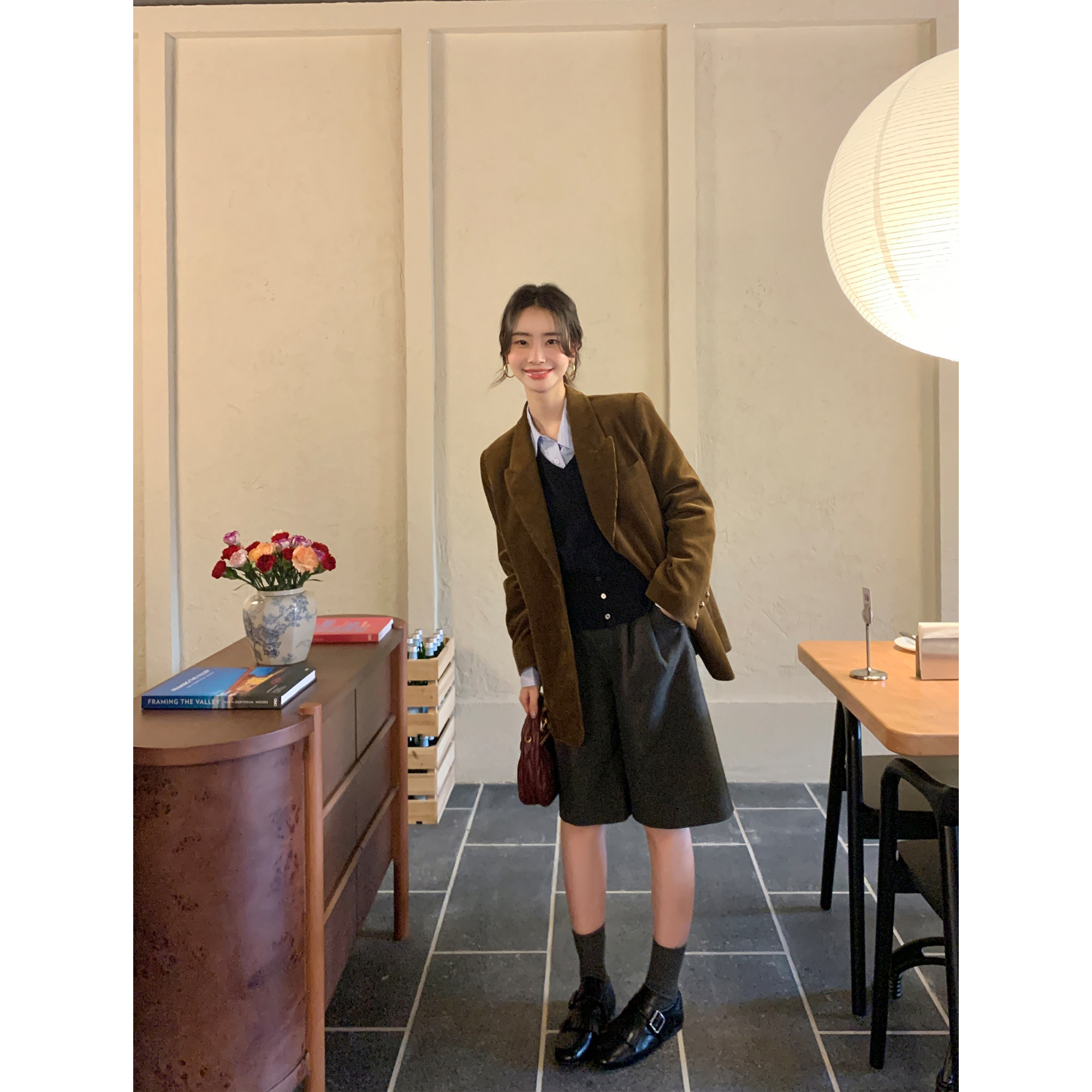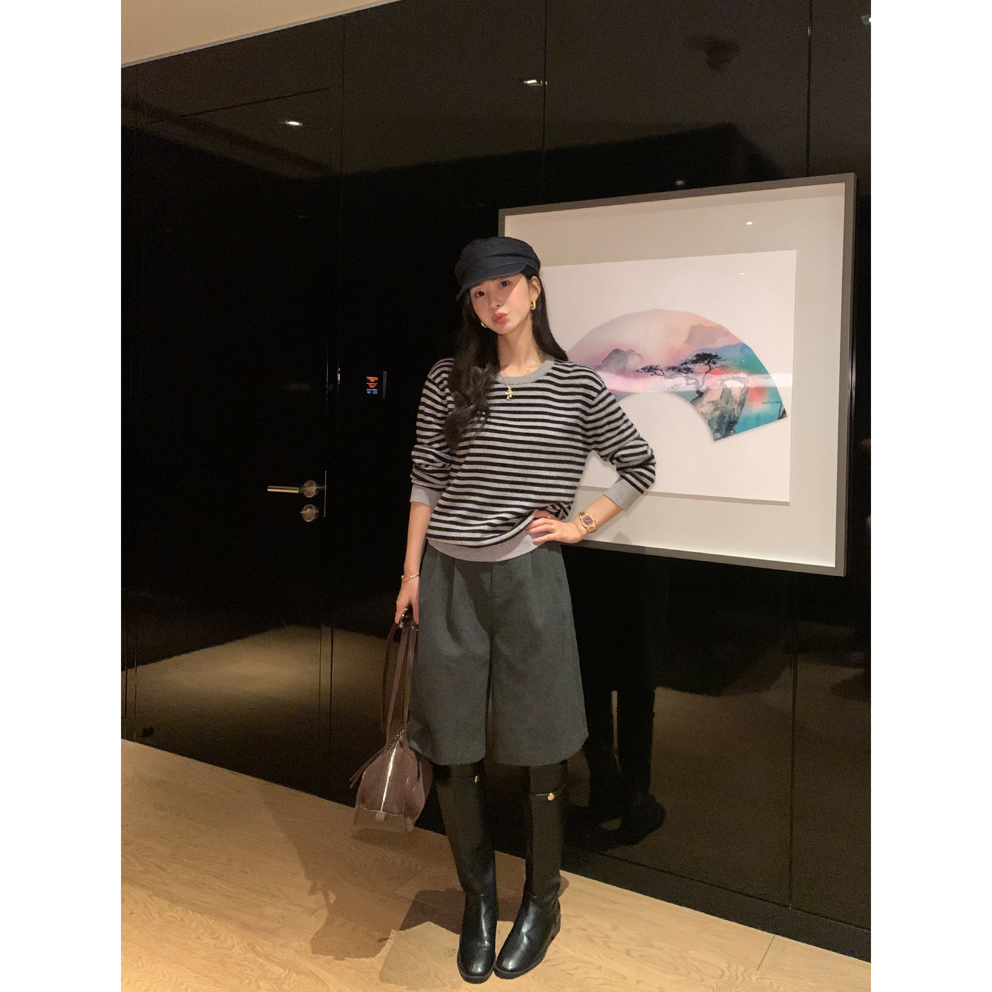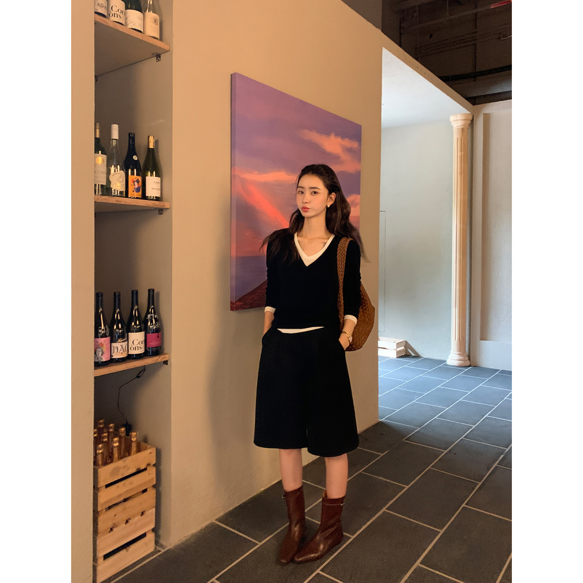 女慵懒宽松休闲阔腿裤 pusumede 五分裤 灰色高腰毛呢西装 不期而遇