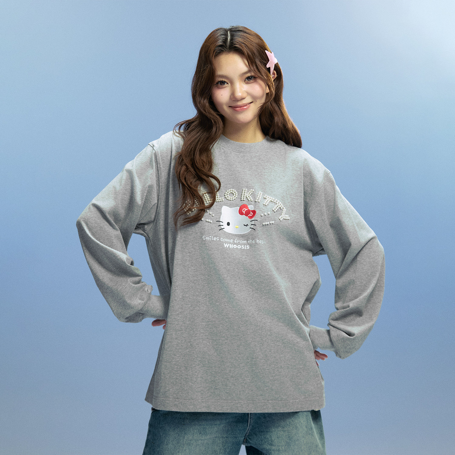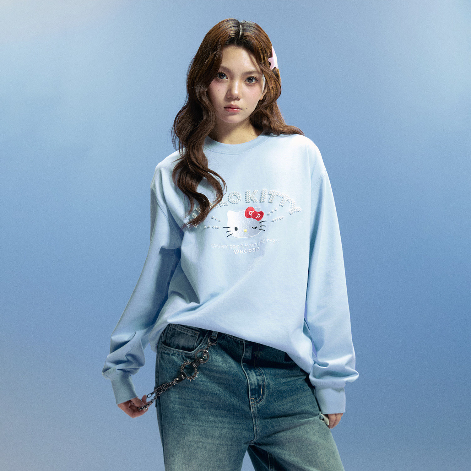 HELLO T恤秋季 KITTY官方联名 表情刺绣长袖 打底男女潮 WHOOSIS