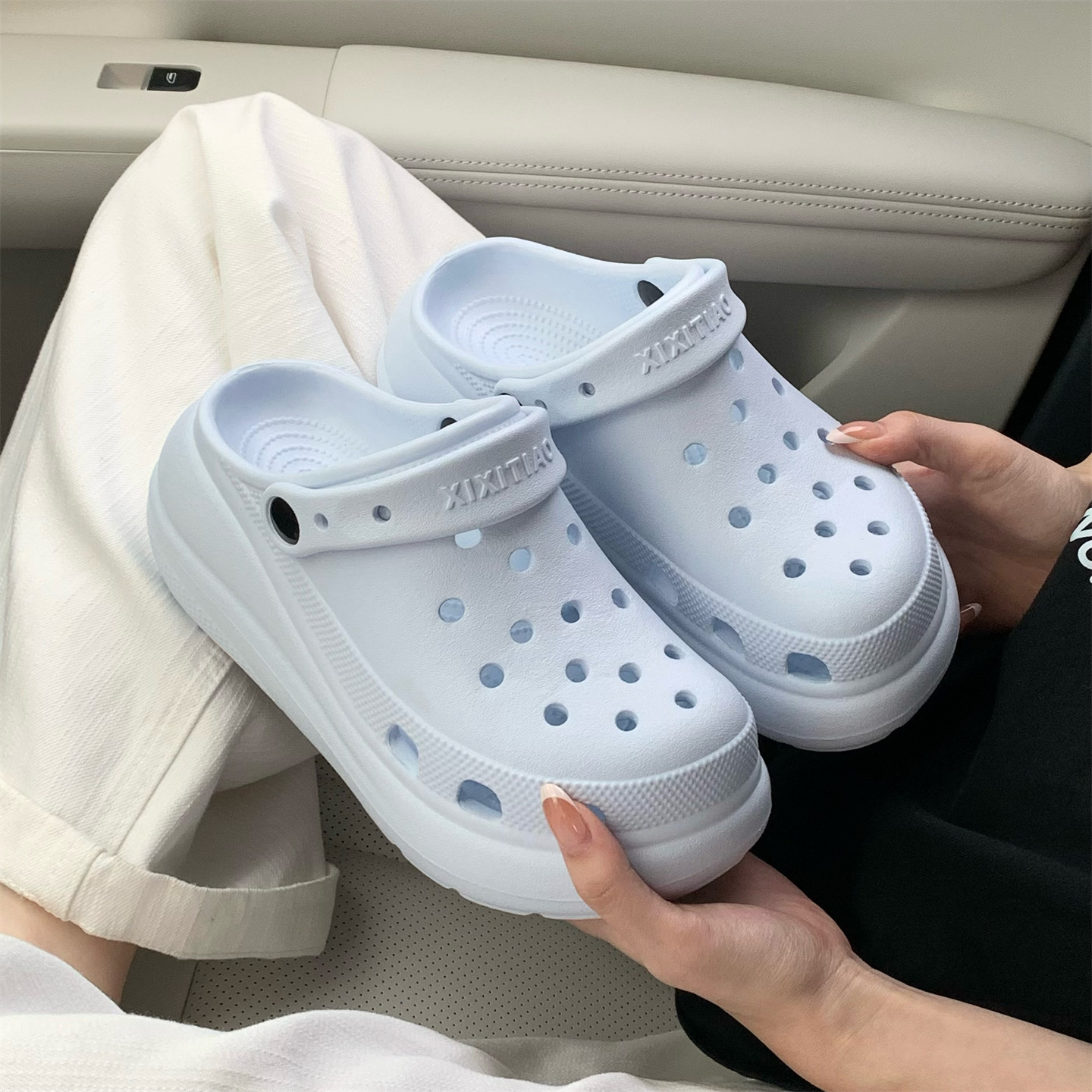 包头拖鞋 女EVA增高厚底夏网红海边度假沙滩凉鞋 足弓洞洞鞋 细细条